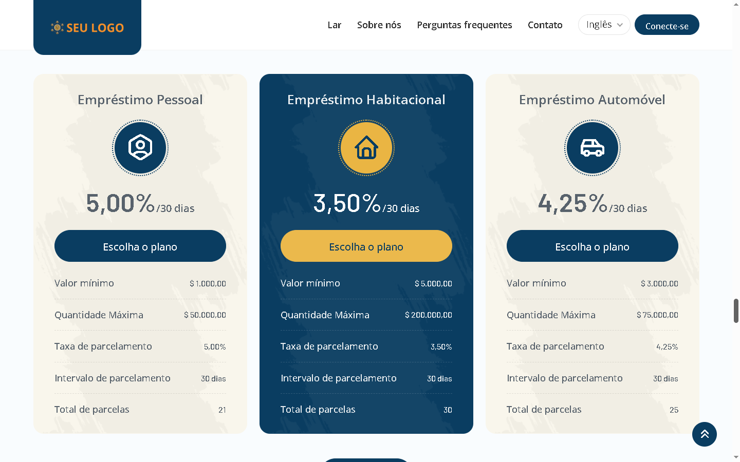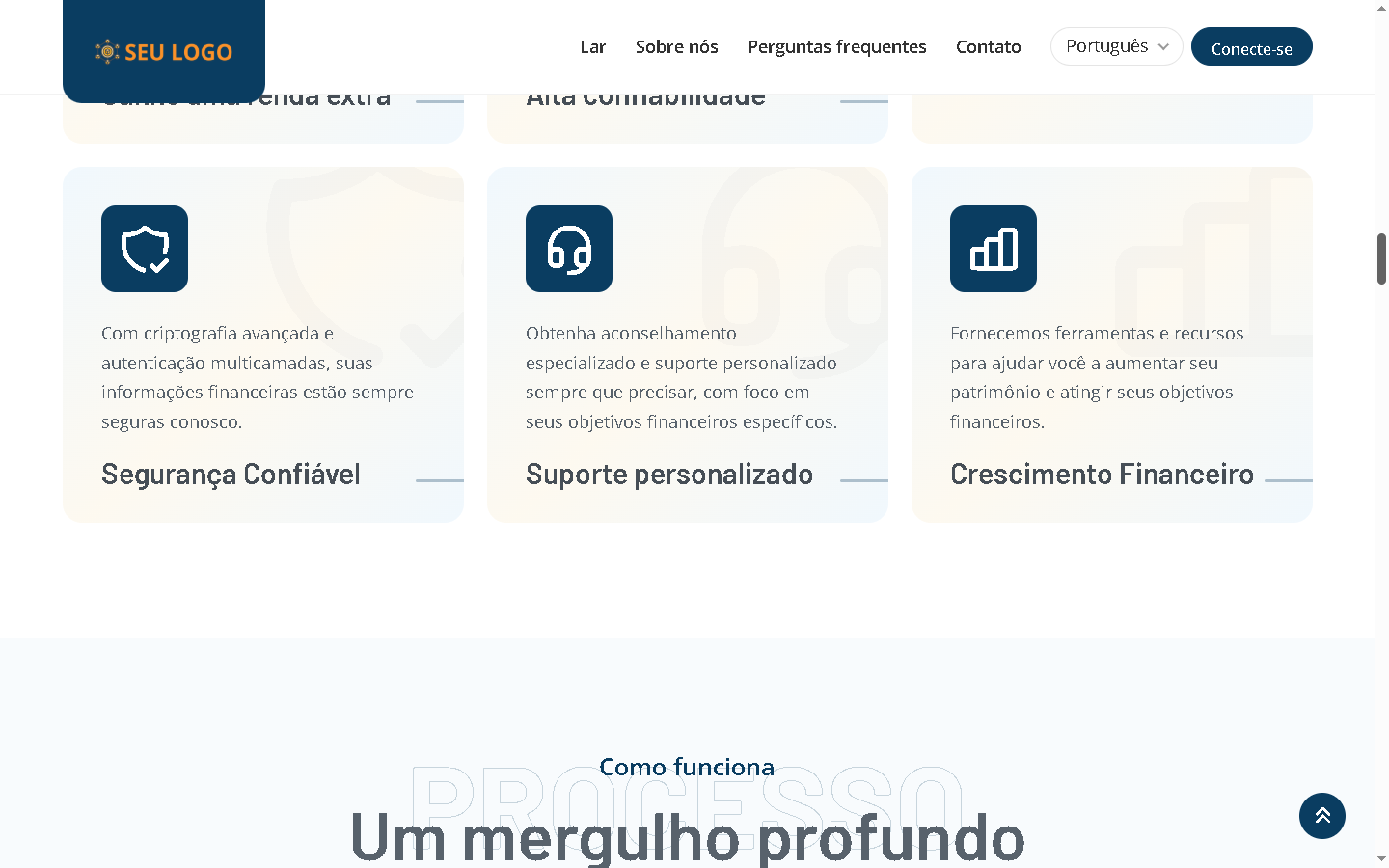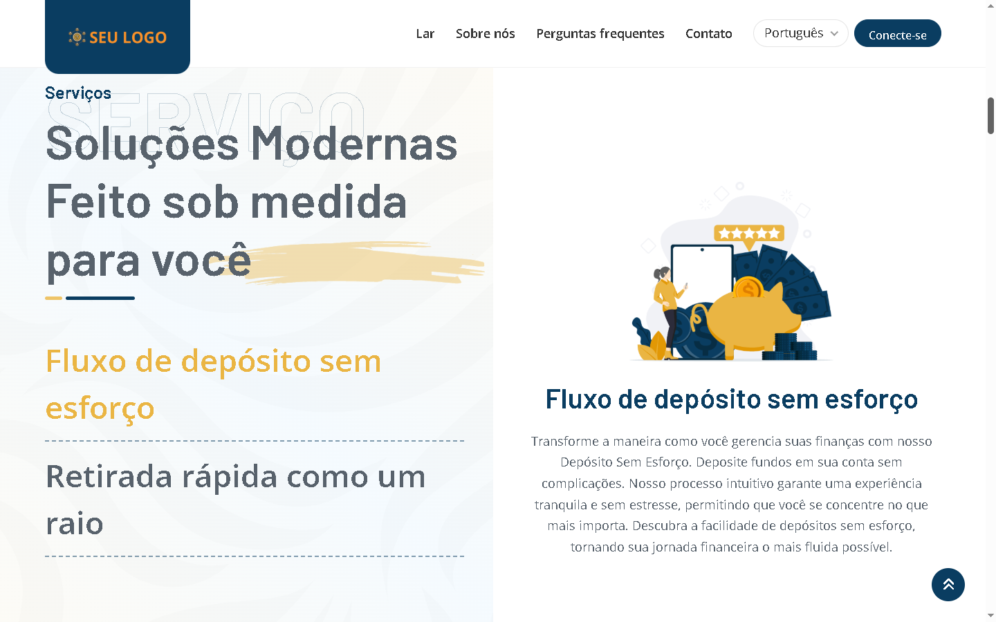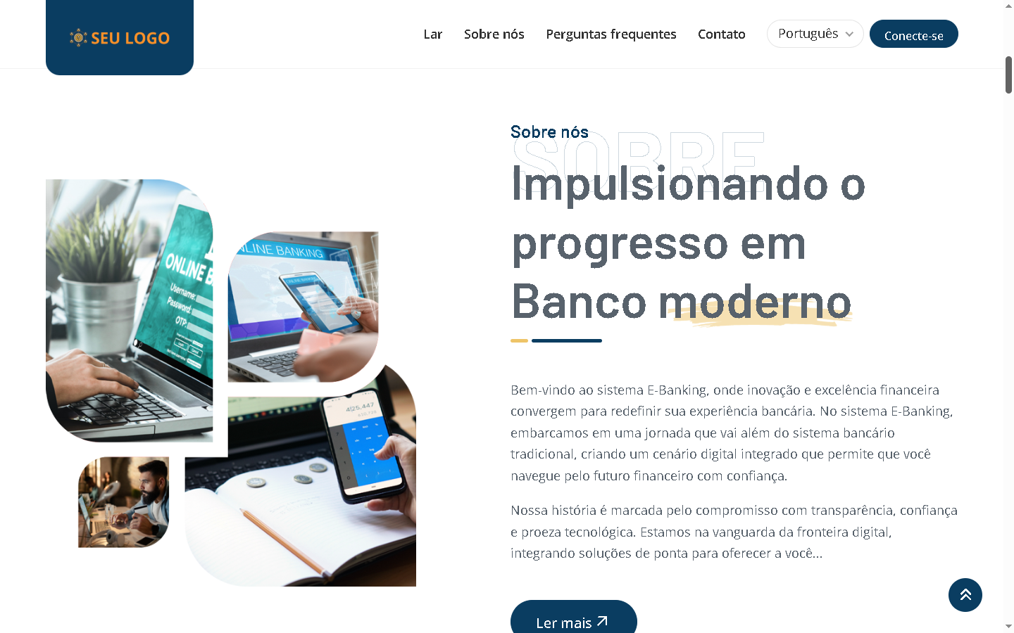 - Páginas inicial e interna com design elegante.