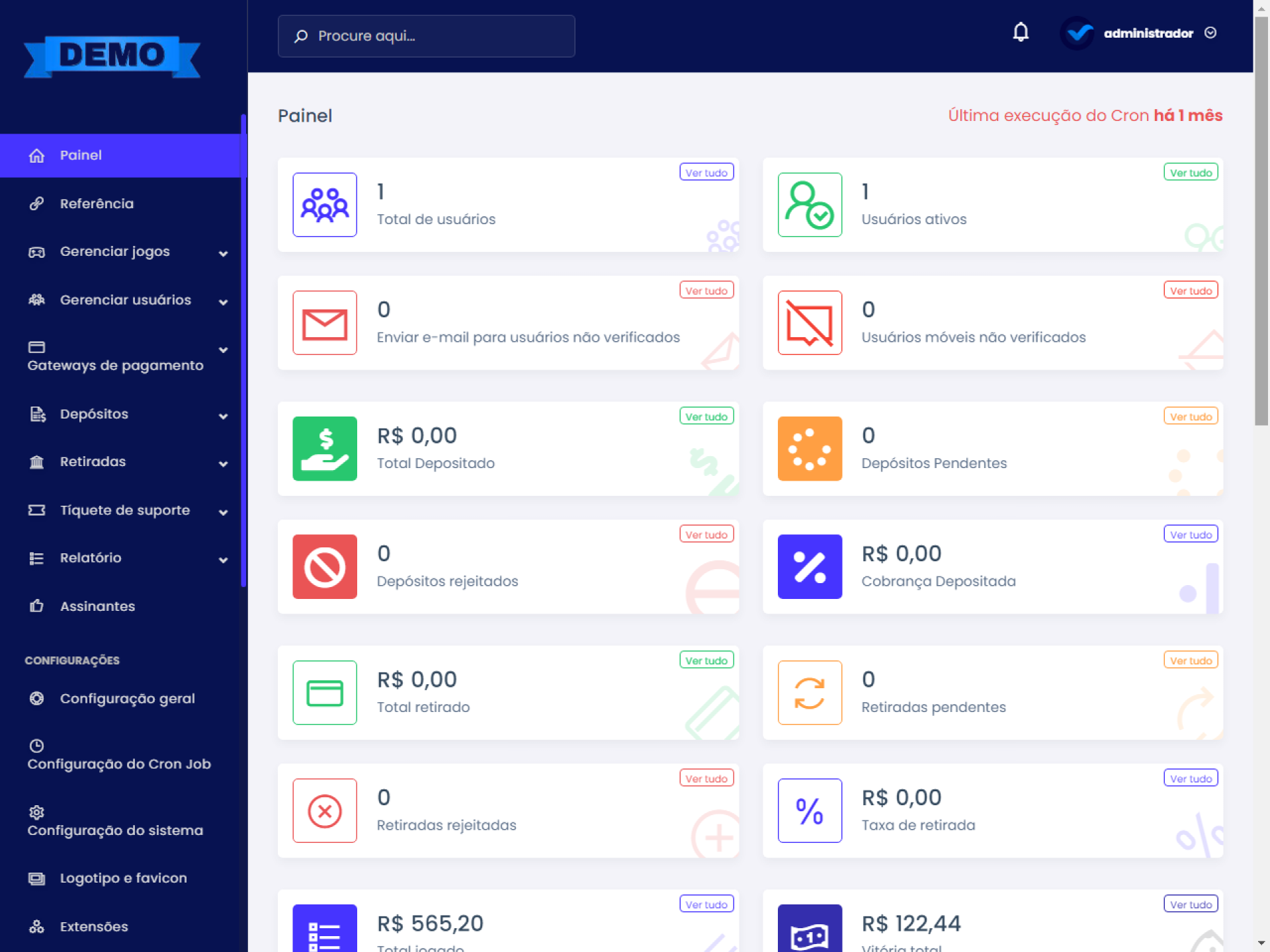 Acesso de administrador: https://script.viserlab.com/xaxino/demo/admin -