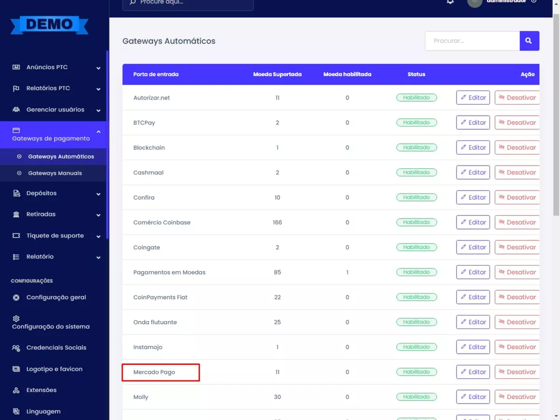 ✓ 21 gateways de pagamento.