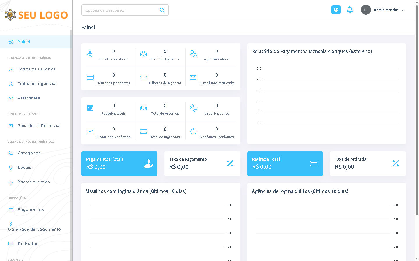 Ela conta com painéis dedicados para agências e viajantes, suporta mais de 10 gateways de pagamento populares e conta com uma arquitetura segura e escalável. A instalação é rápida e fácil, com um guia em vídeo passo a passo incluído. Seja para lançar um marketplace de viagens ou oferecer serviços como agência.