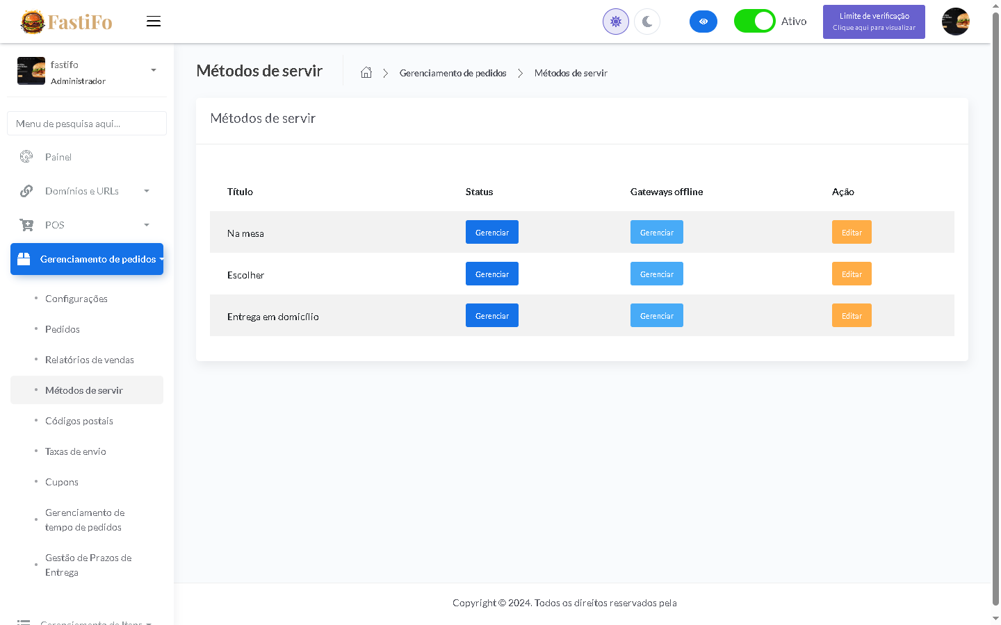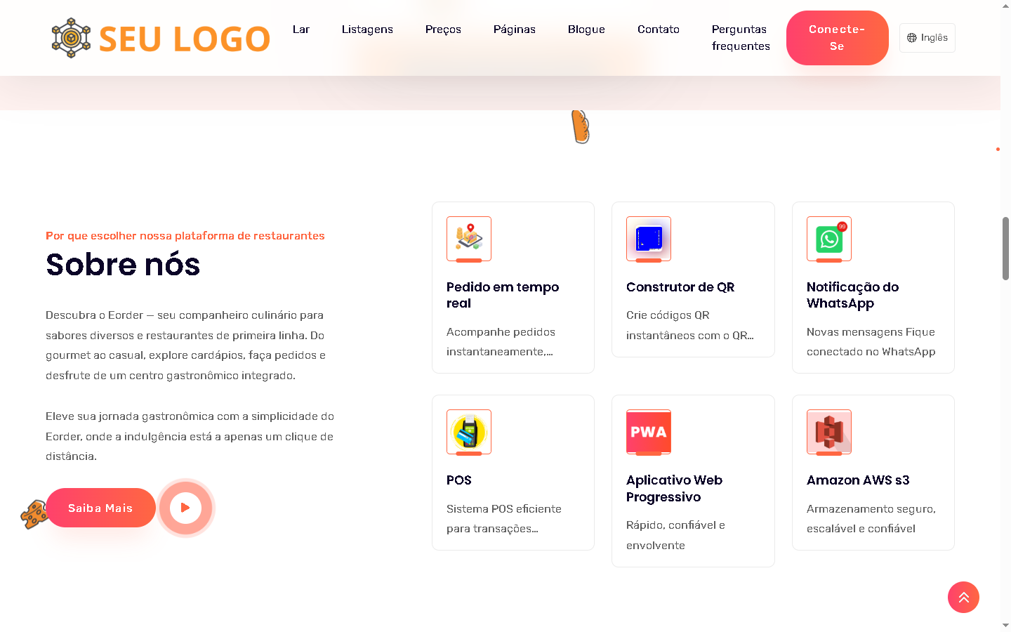 - Suporte a entrega, retirada e consumo no local