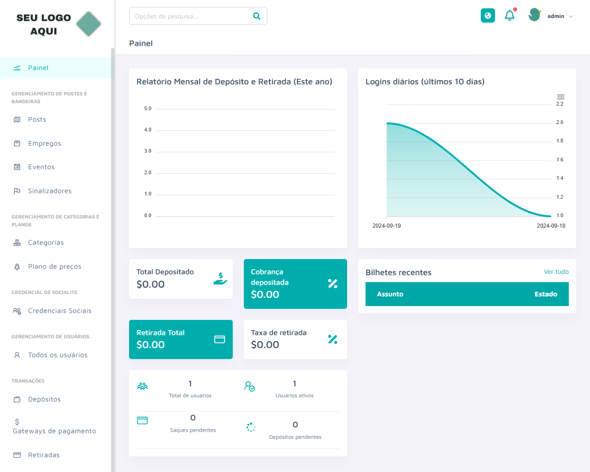 Nome de usuário: admin | Senha: admin
