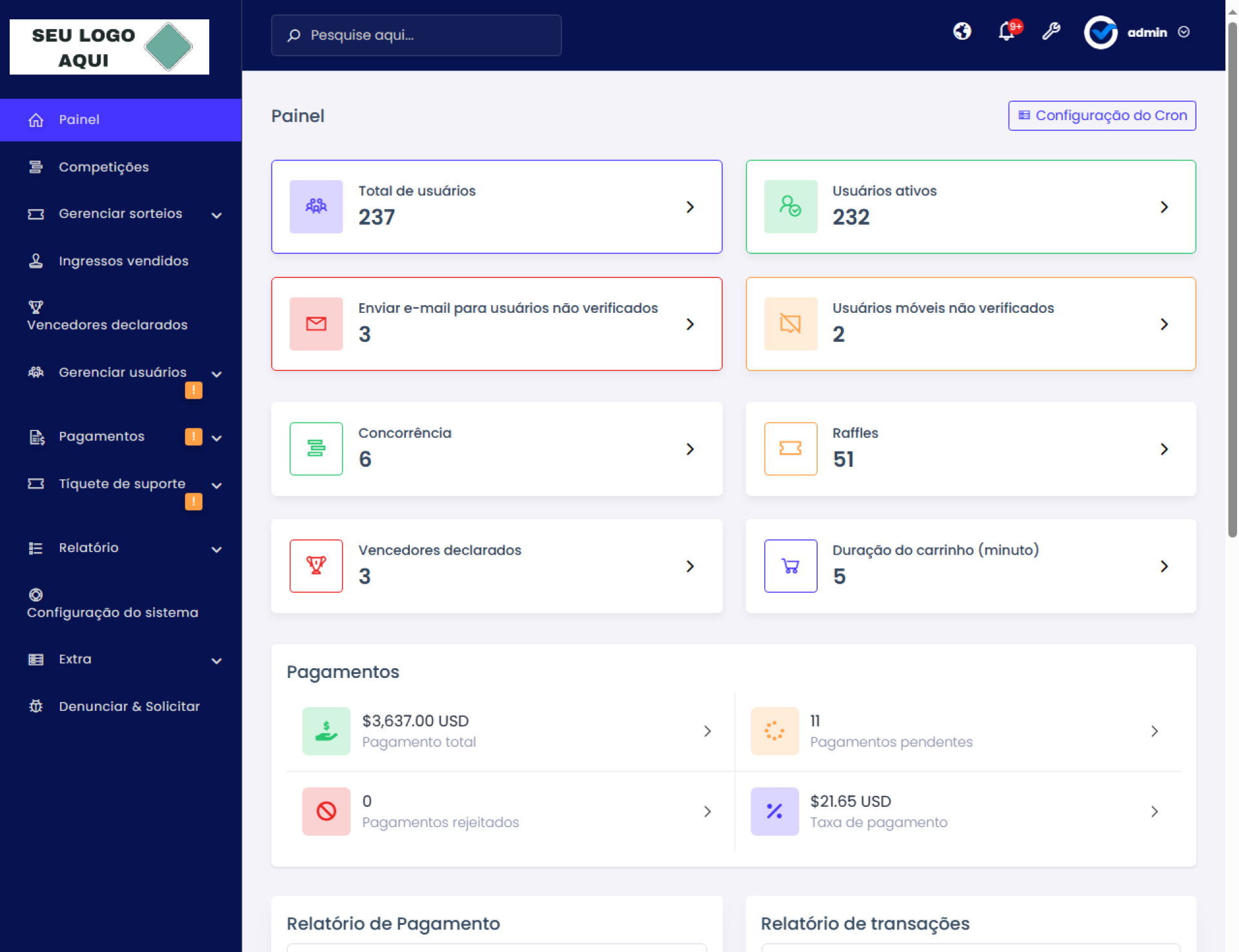 Painel de administração robusto