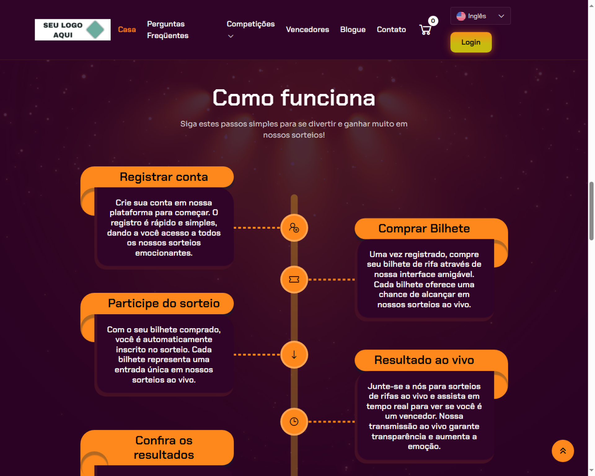Compre ingressos para ter a chance de ganhar uma variedade de recompensas incríveis. Nossa plataforma é perfeita para quem gosta da emoção da competição e da possibilidade de ganhar muito. Com várias competições e sorteios aleatórios, as oportunidades são infinitas. Esteja você buscando carros, eletrônicos ou mais, nossa experiência perfeita garante uma jornada envolvente e gratificante, desde a compra