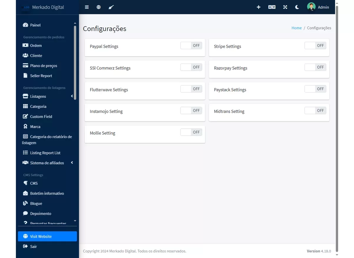 Painel de administração poderoso