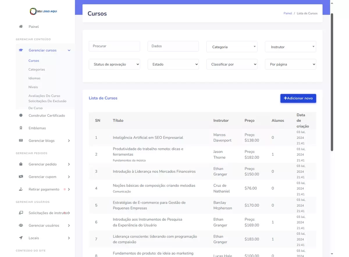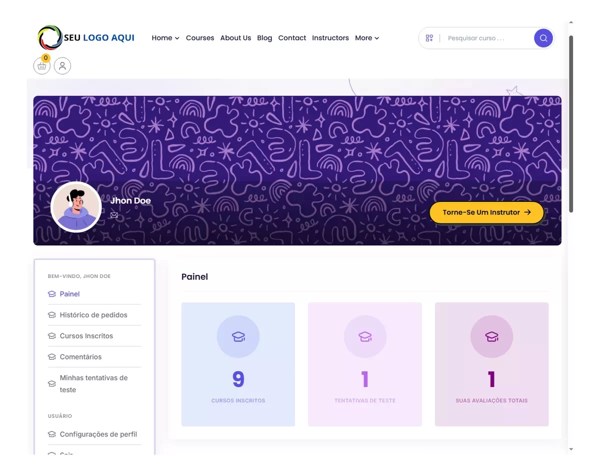 do instrutor Login do painel do instrutor: instructor@gmail.com | 1234