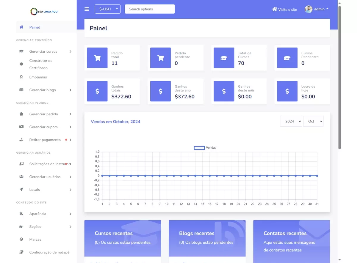 de administração Login do painel de administração: admin@gmail.com | 1234