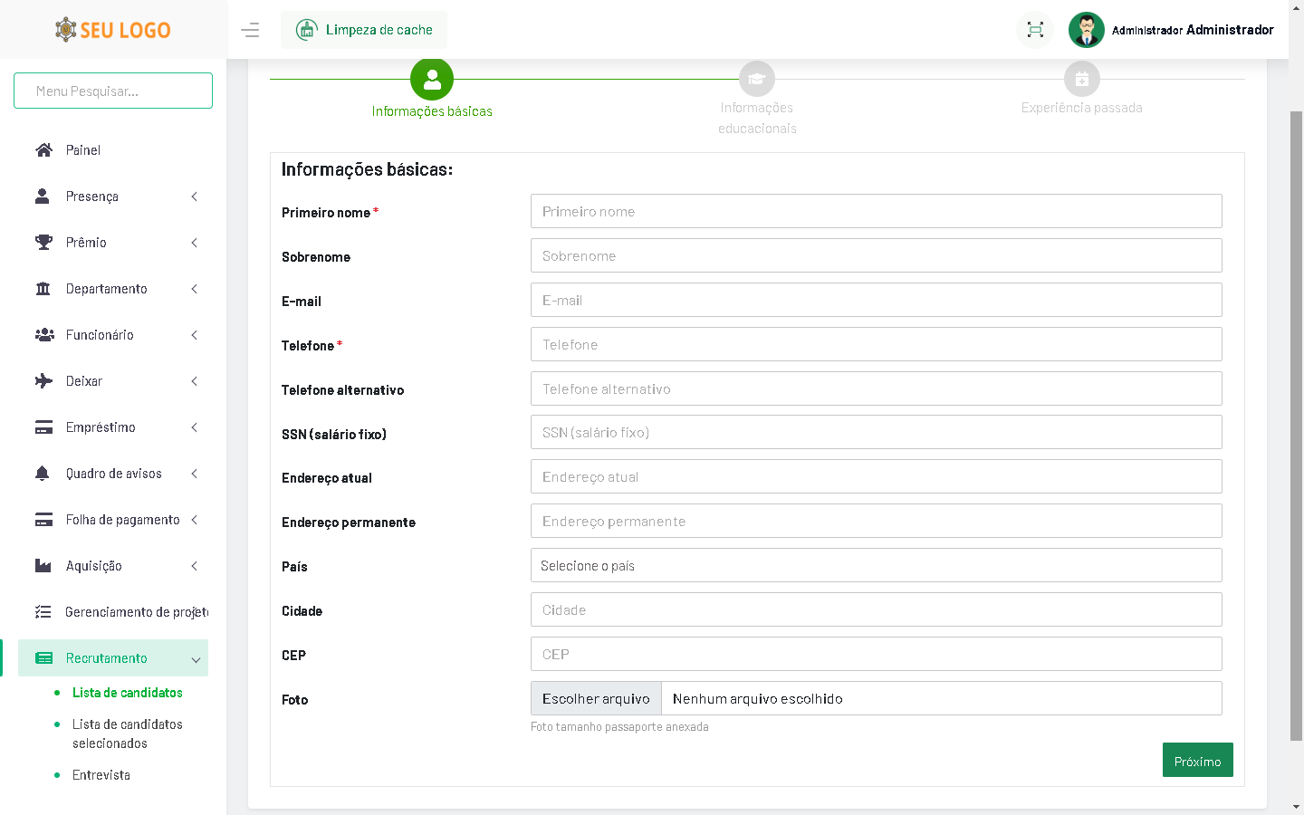 Processo completo de recrutamento de funcionários