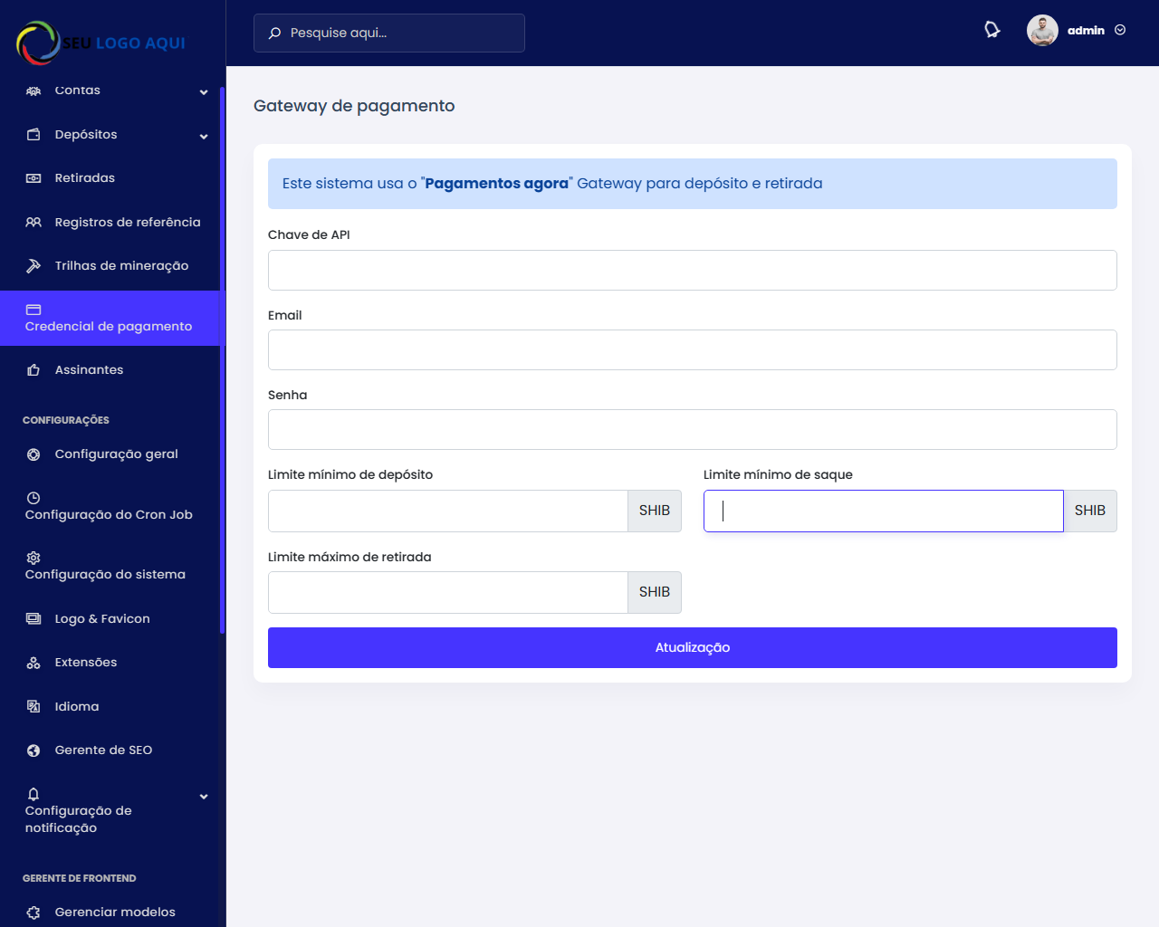 login admin senha admin