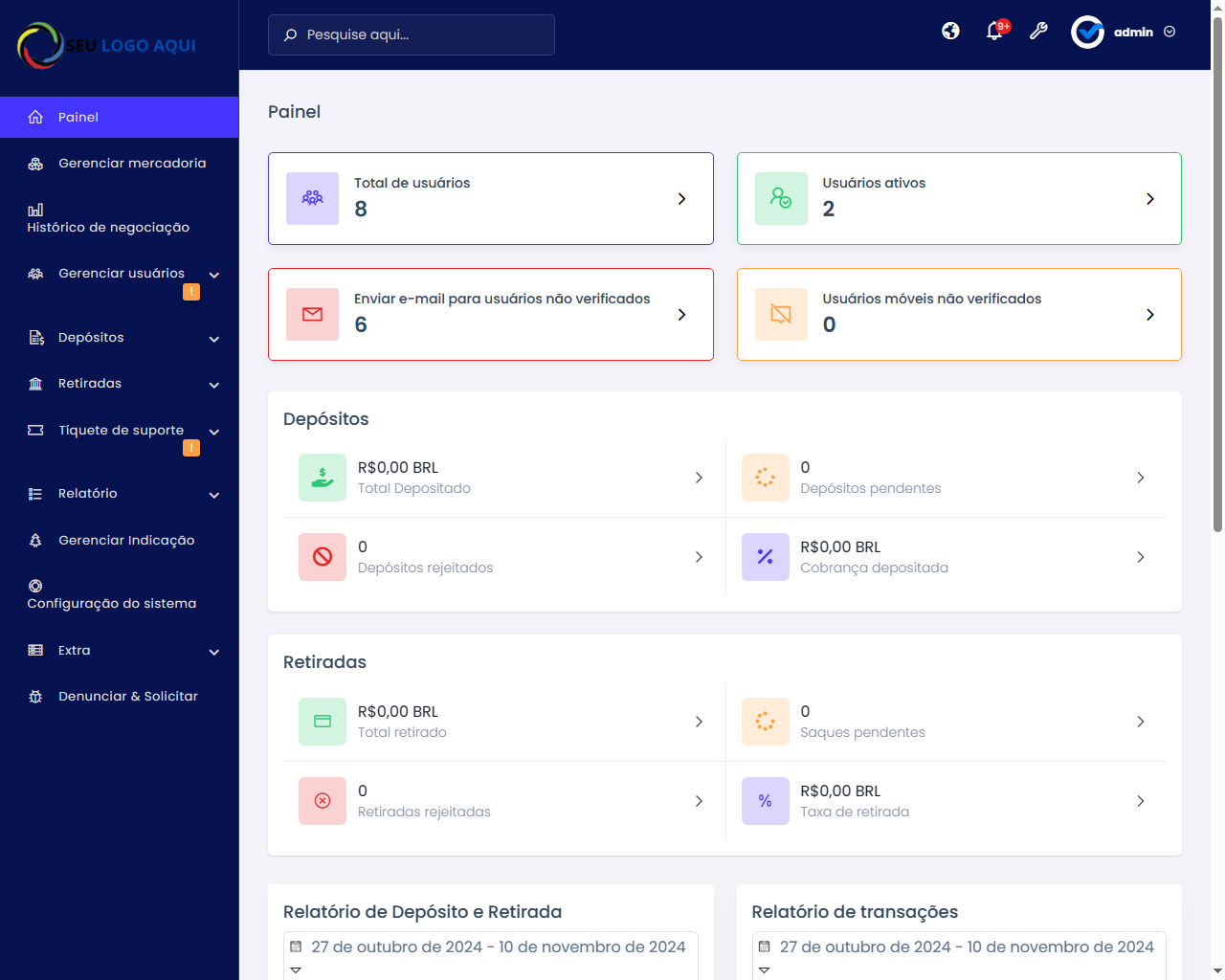 - Painel de administração 100% seguro.