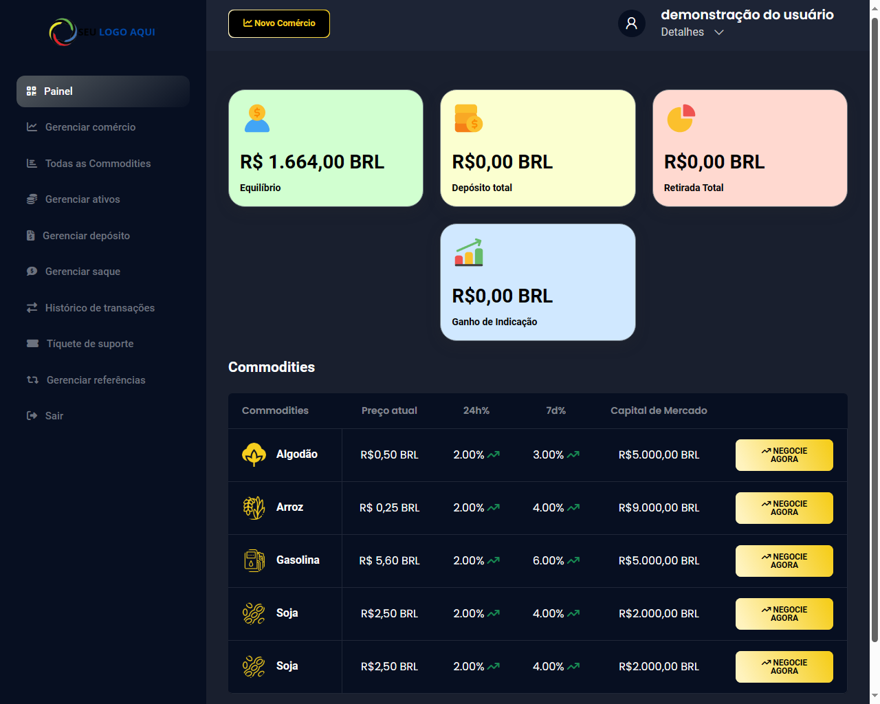 - Gerenciar commodities.