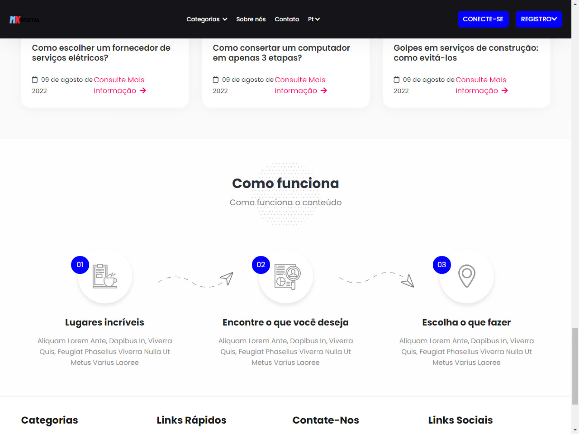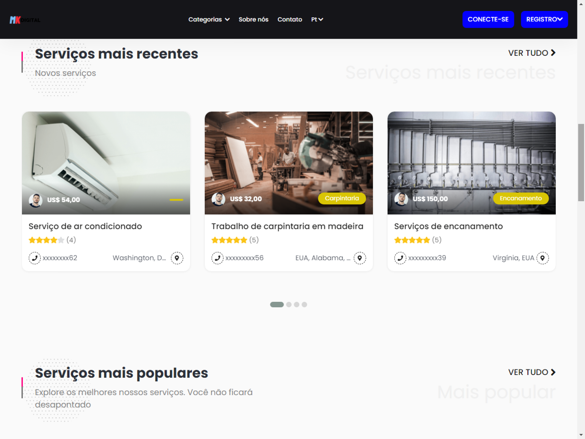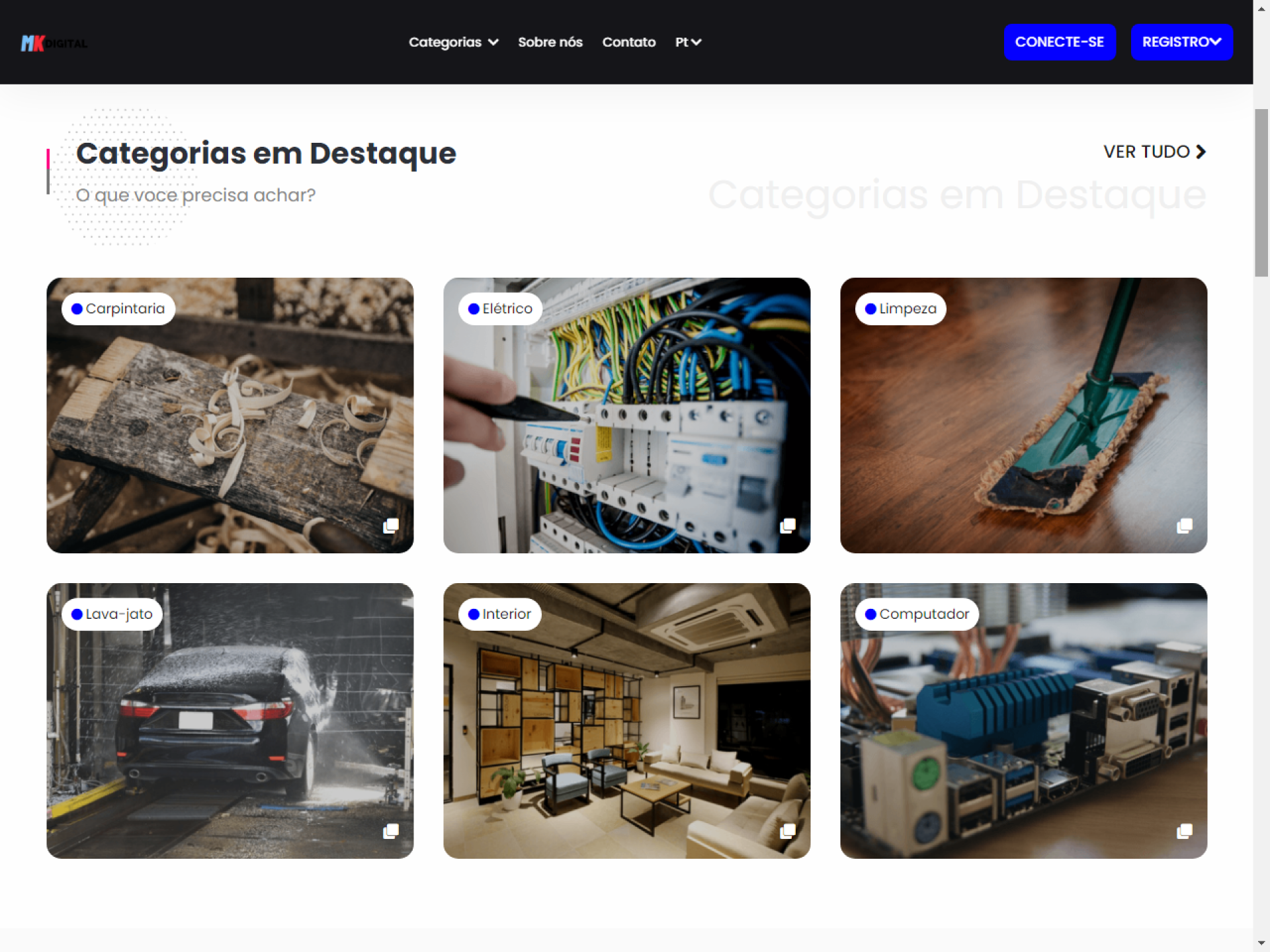 - Publicar um serviço: Os profissionais podem postar seus serviços com informações detalhadas sobre o que você irá prestar.