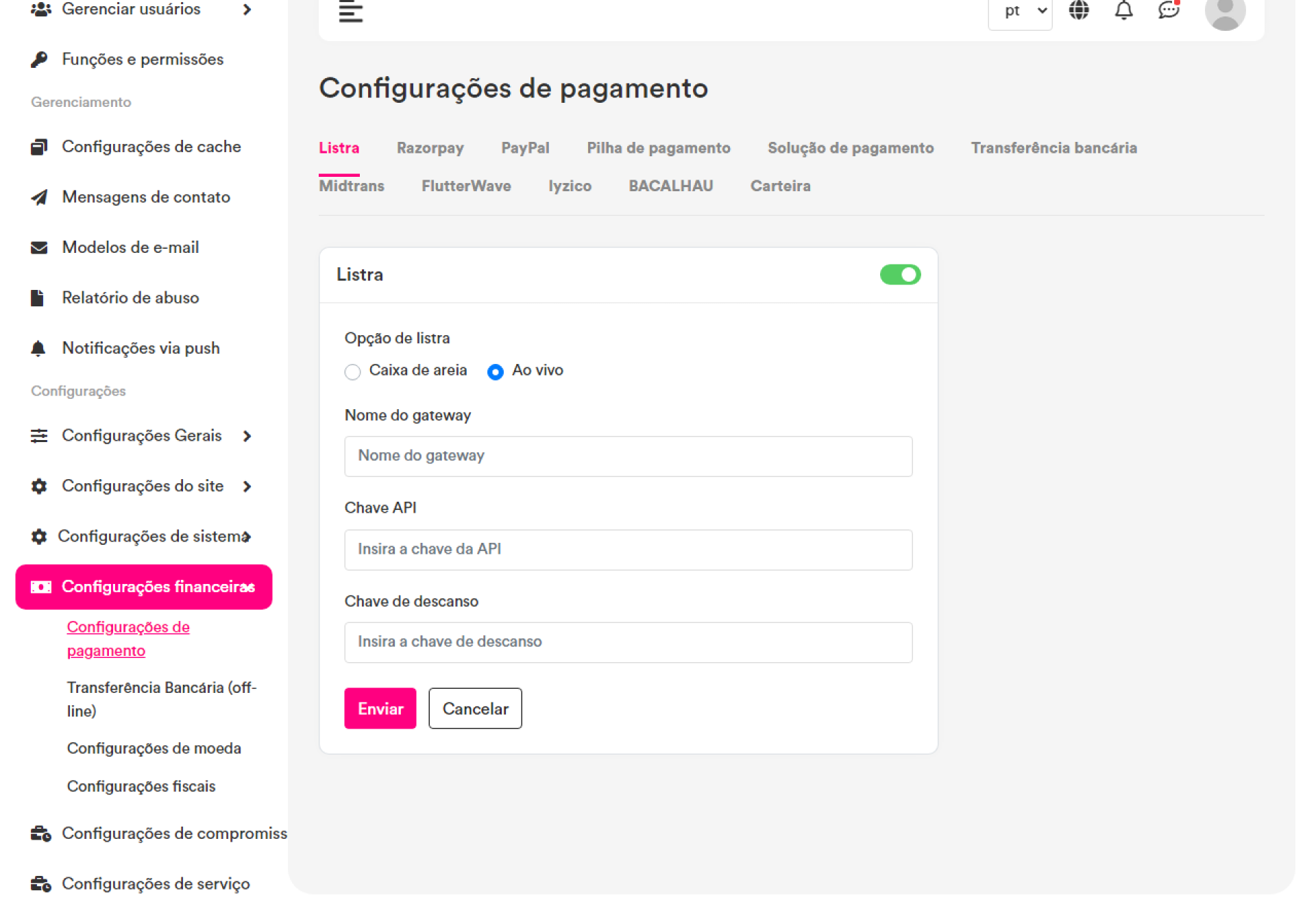 - Retirada de carteira/valor: a qualquer momento, os provedores de serviços podem retirar o pagamento da carteira para a conta stripe.