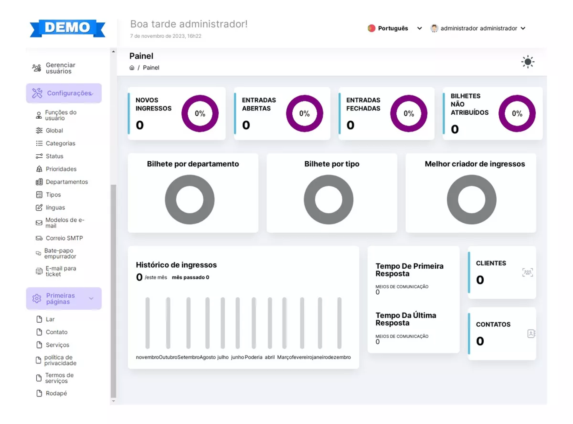 Suporte/atribuição de tickets