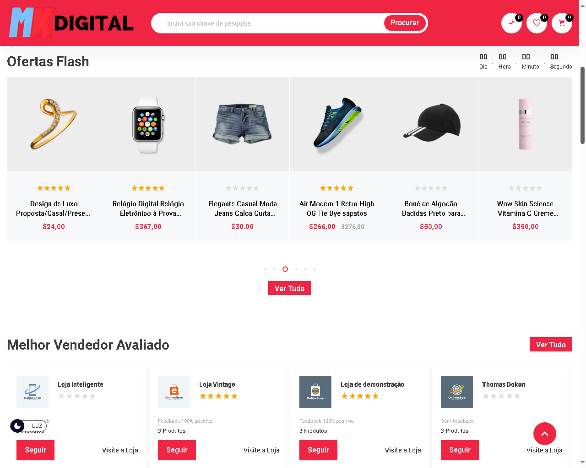Vendedor de demonstração: URL: https://tlcommerce.themelooks.us/seller/login