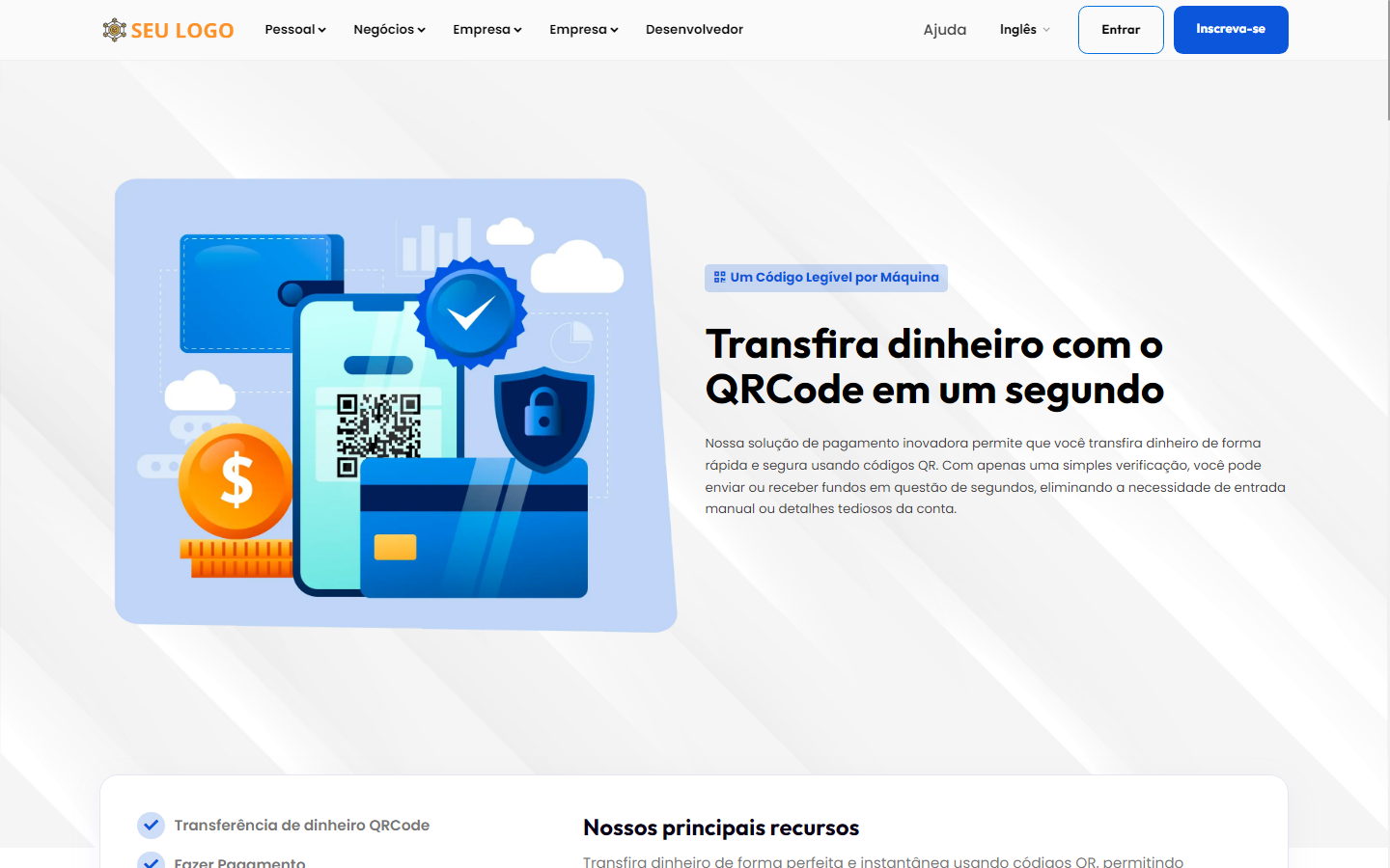 Transferência com QR Code: Transferências fáceis de dinheiro digitalizando um côdigo QR.