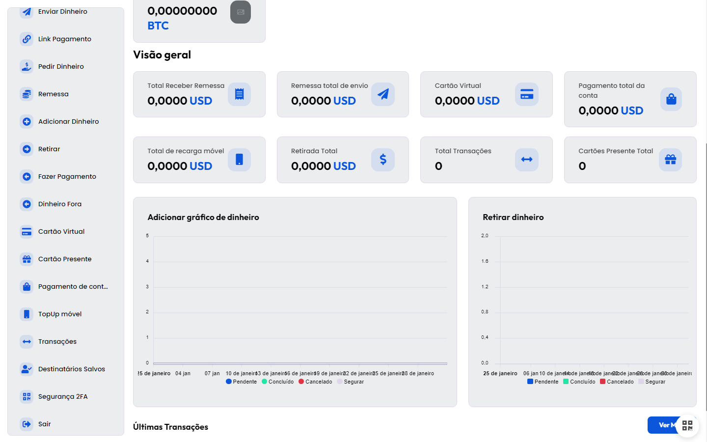 Remessa e retirada de dinheiro: Suporta transferências internacionais de dinheiro e retrada de dinheiro.