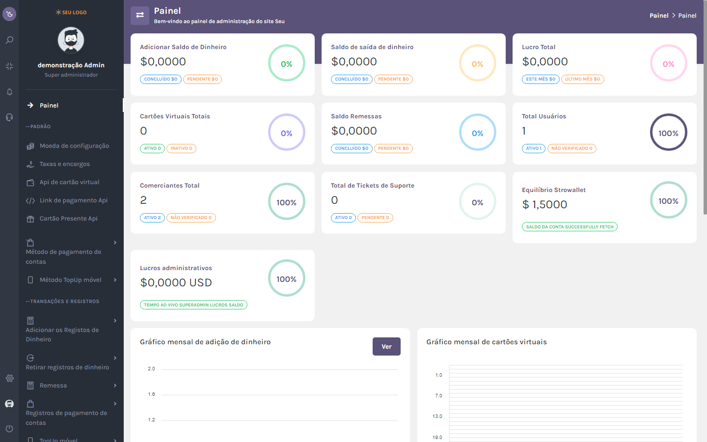 Limites de transação diária e mensal: Limites de transação definidos pelo administrador para segurança e controle.