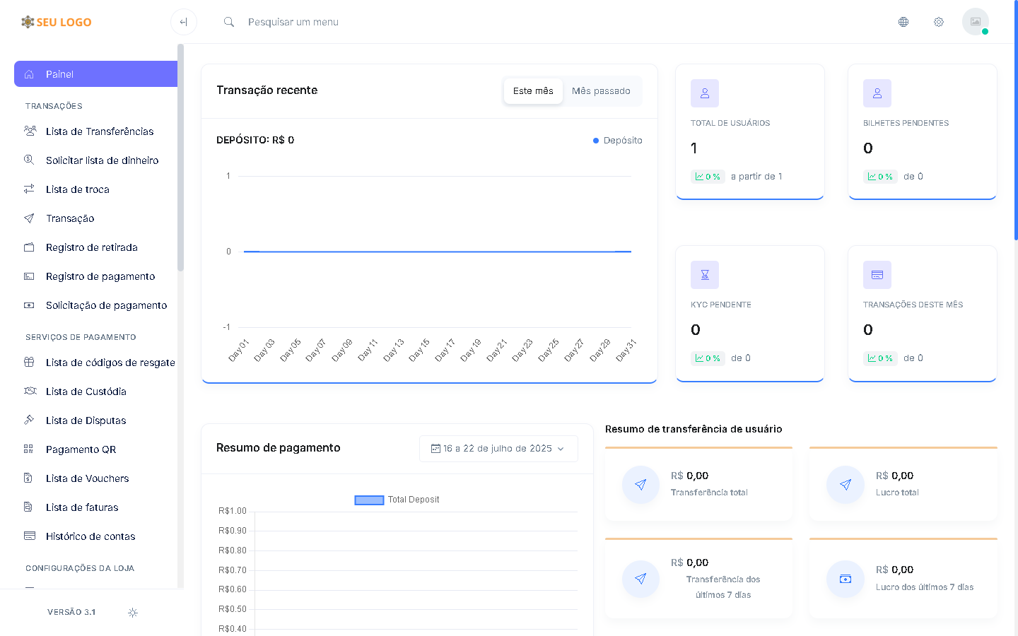 O sistema oferece recursos como depósitos, saques, envio de dinheiro, solicitação de dinheiro, pagamento de vouchers, geração de resgate, sistema de custódia, disputa, pagamento por QR Code, fatura, loja, pagamento de contas de serviços públicos, cartão virtual, API de pagamento, comissão multinível e assim por diante. É otimizado para SEO, possui arquitetura moderna e é um aplicativo web seguro. Possui um tema dinâmico e atraente para front-end, painel do usuário e painel de administração.