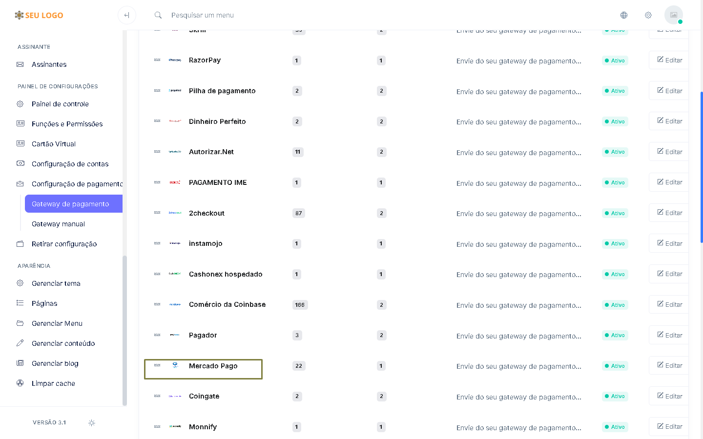 Muitos gateways de pagamento automatizados
