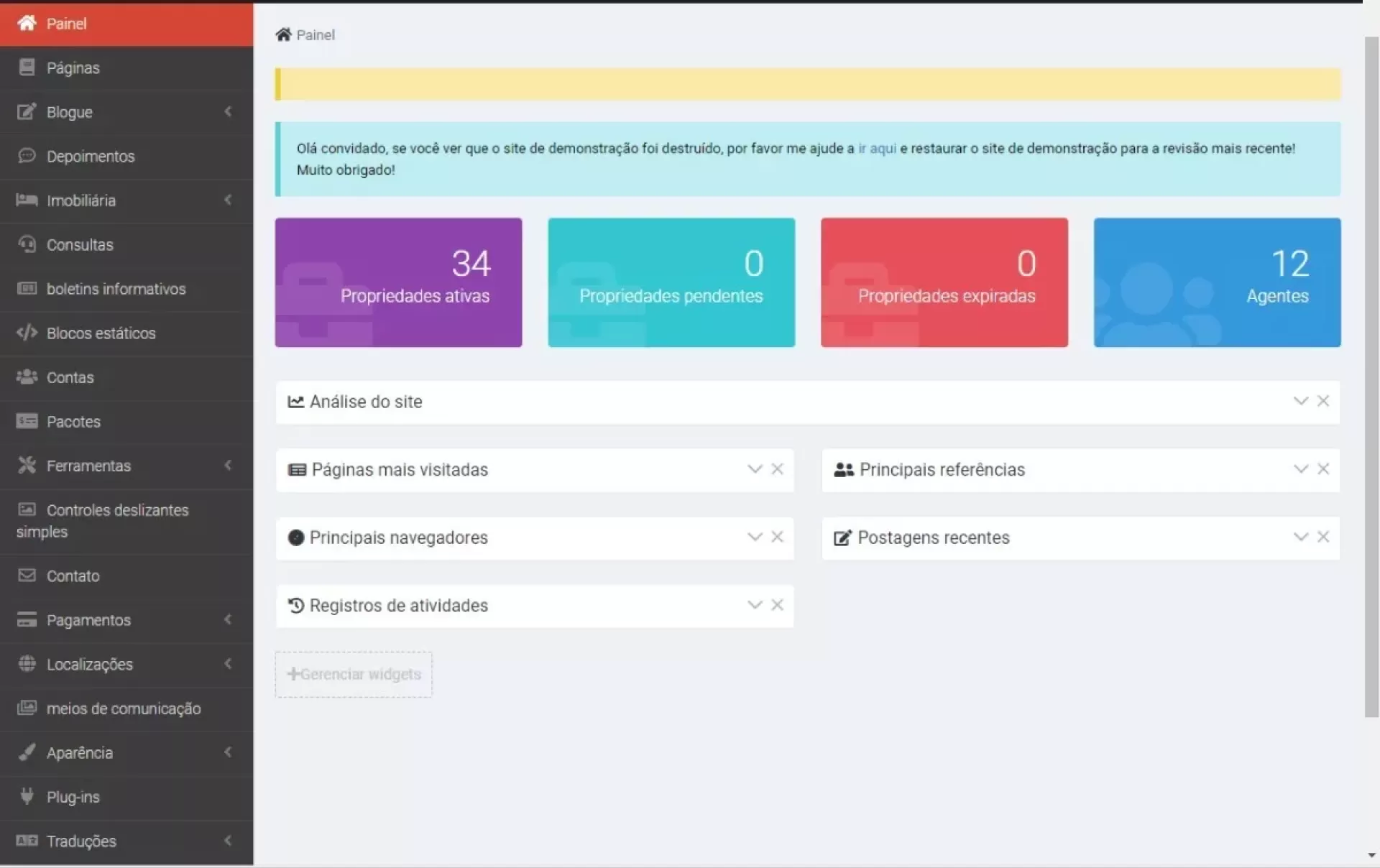 Conta de administrador: admin – 12345678 (nome de usuário e senha são preenchidos automaticamente)