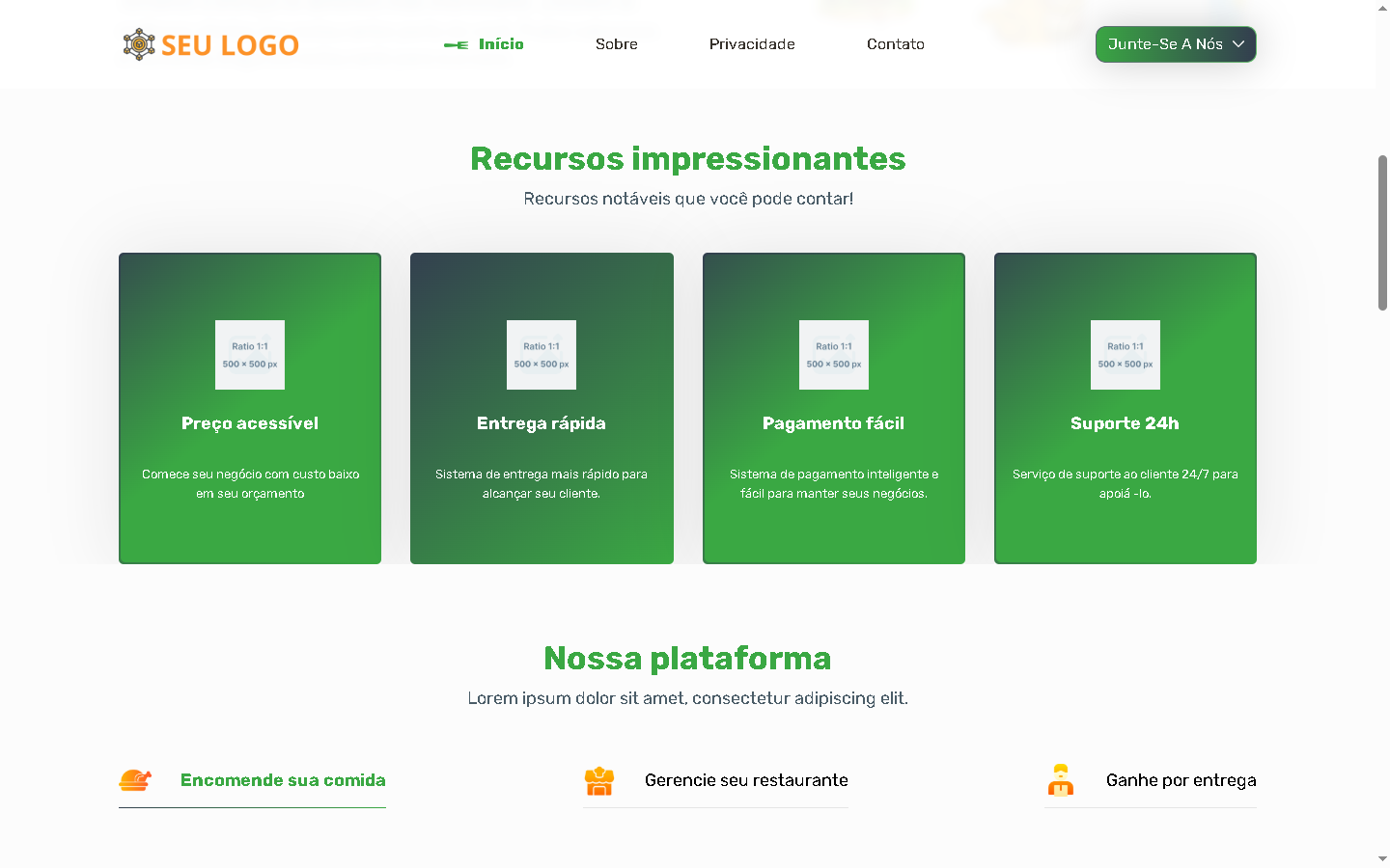 Com layout moderno, design responsivo e funcionalidades intuitivas, ele é ideal para quem deseja empreender no setor de alimentação com pedidos online e entregas rápidas.