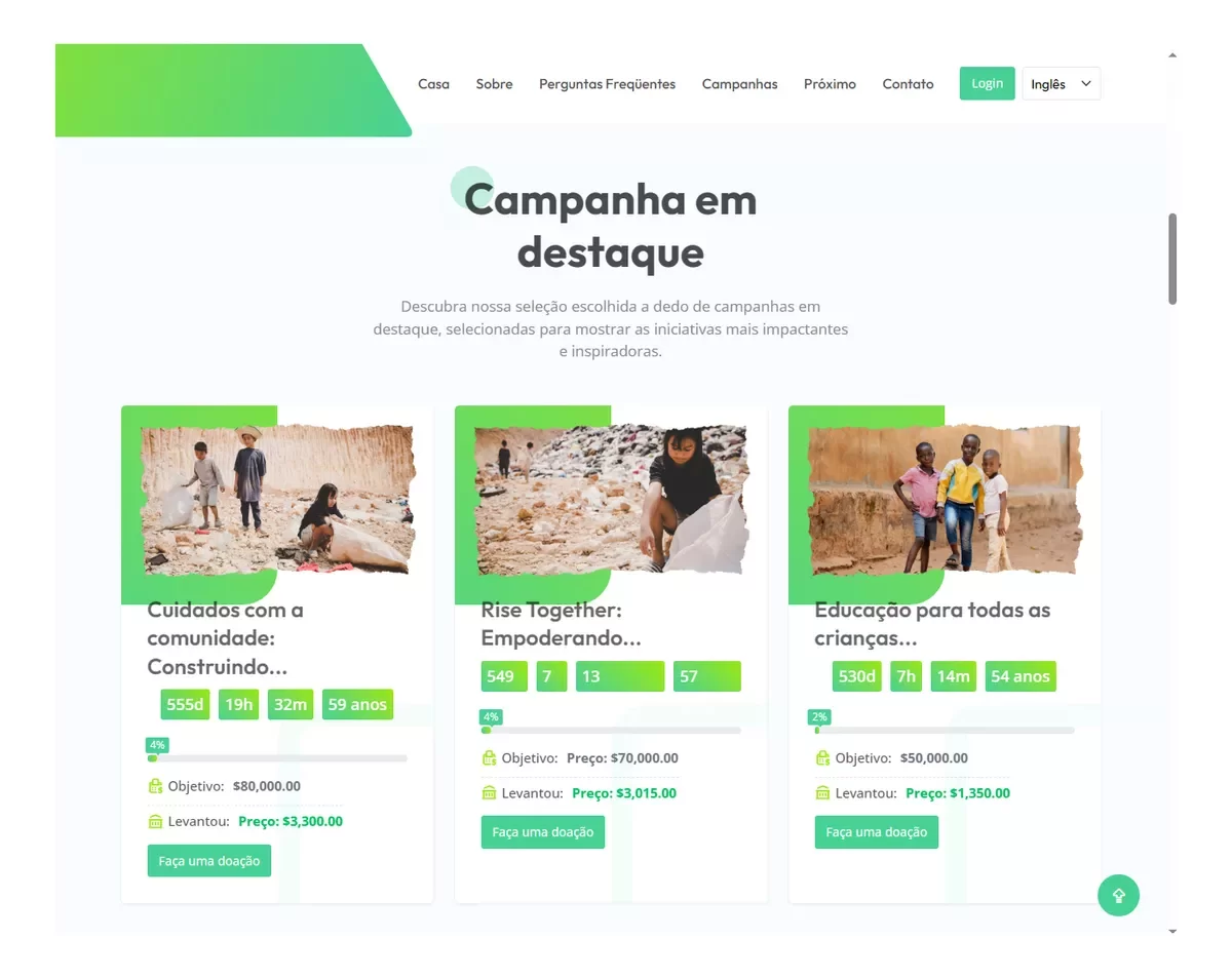 Esta plataforma dinâmica de financiamento e doação não é apenas visualmente cativante, mas também repleta de recursos personalizados, garantindo uma operação perfeita em todos os dispositivos e sistemas operacionais. Explore a variedade de funcionalidades poderosas.