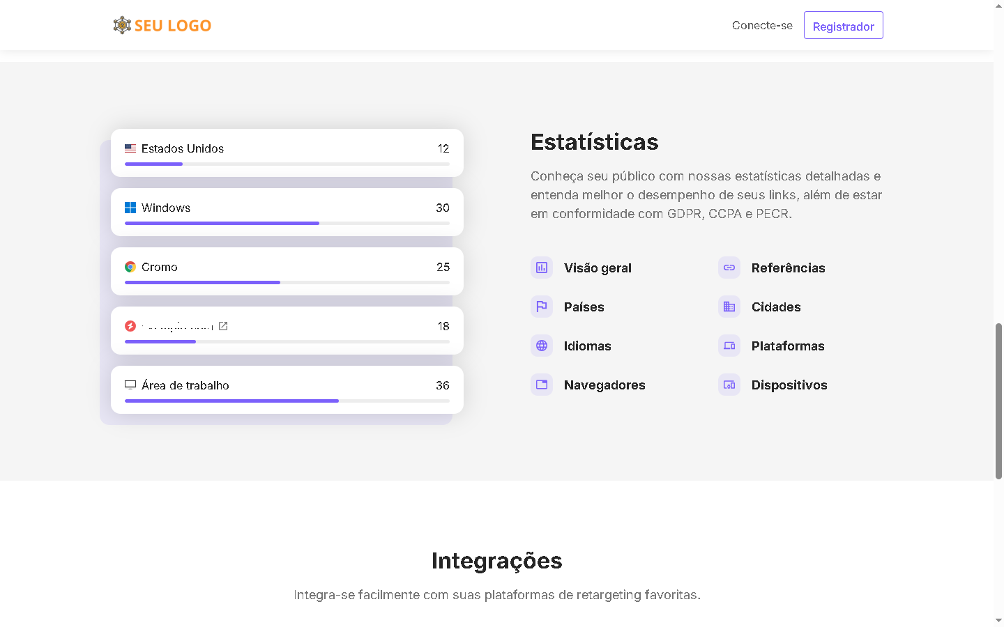 ESTATÍSTICAS – Obtenha insights analíticos para seus links sobre sua Visão Geral do Público, Referências, Países, Cidades, Idiomas, Plataformas, Navegadores e Dispositivos.