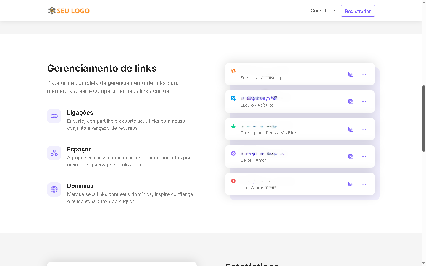 LINKS – Gerencie os links. Visualize, edite ou exclua os links.
