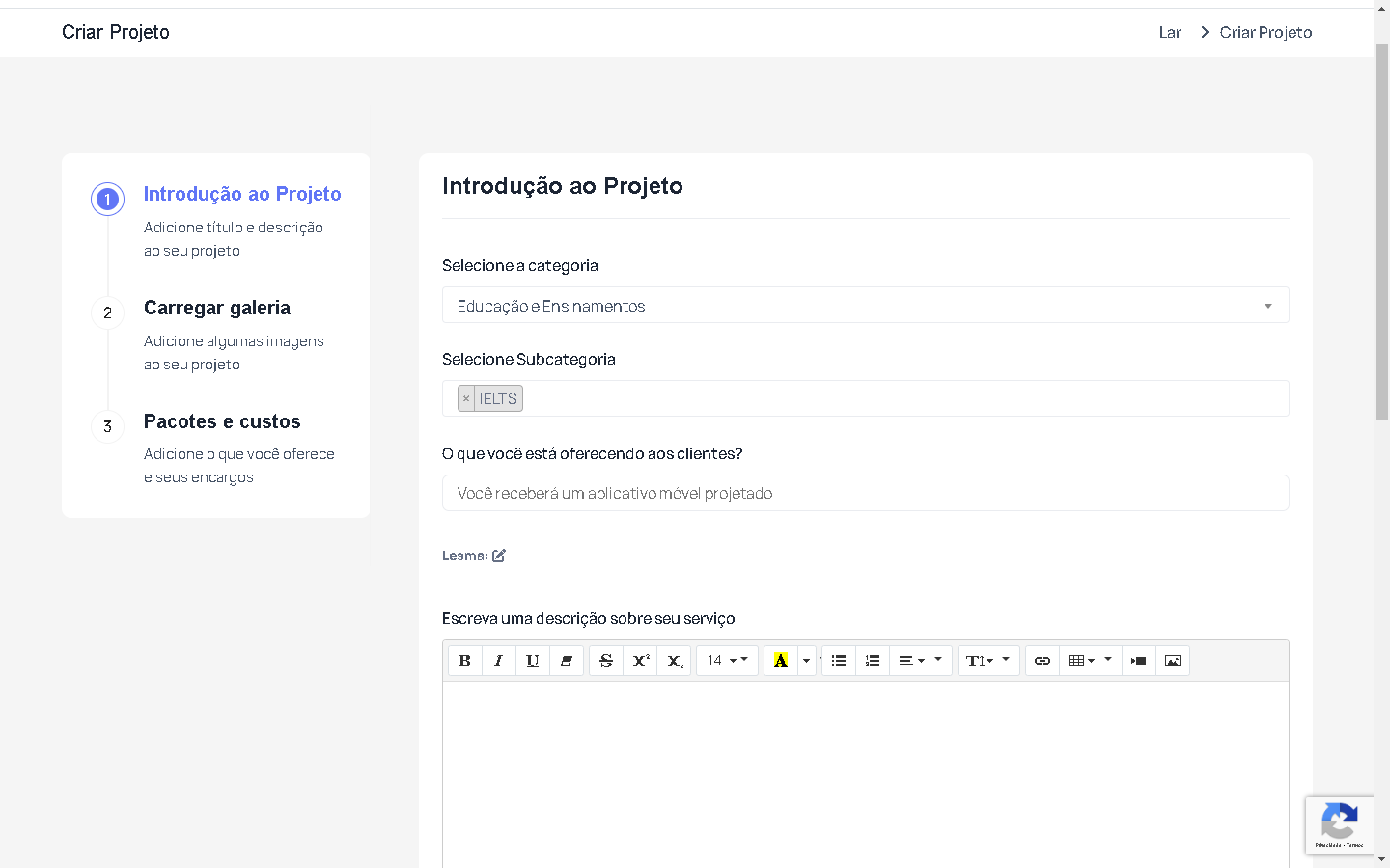 A plataforma capacita os vendedores a mostrar sua expertise por meio do recurso Seller Project, oferecendo uma maneira única de atrair clientes. Os vendedores têm a flexibilidade de criar projetos com três planos distintos, cada um variando em preço, cronograma e requisitos. Essa estrutura permite que os vendedores atendam a uma ampla gama de necessidades e preferências dos clientes, oferecendo pacotes que variam do básico ao premium. Os clientes se beneficiam dessa diversidade ao poderem contratar vendedores diretamente com base no pacote que melhor se adapta ao escopo e orçamento do projeto. Esse processo de contratação direta não apenas agiliza o engajamento, mas também fornece clareza e eficiência, garantindo uma transação e iniciação de projeto tranquilas. O recurso Seller Project, portanto, é uma prova do comprometimento da plataforma em fornecer soluções versáteis e focadas no cliente.