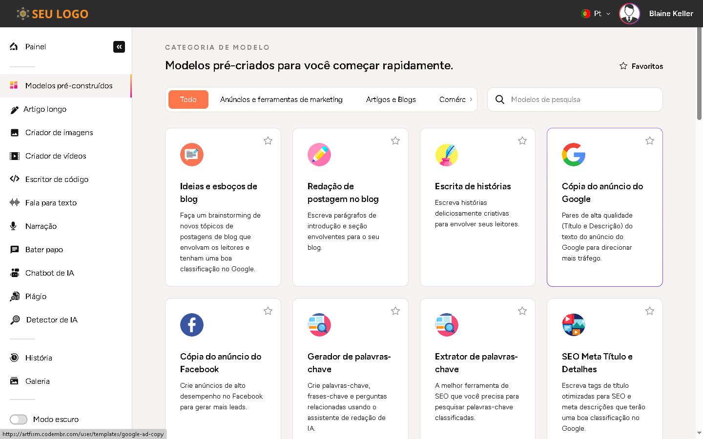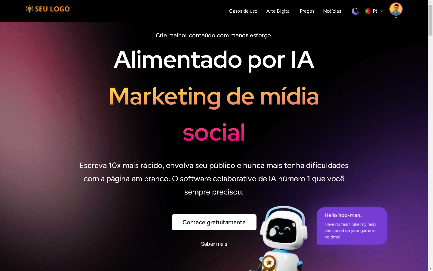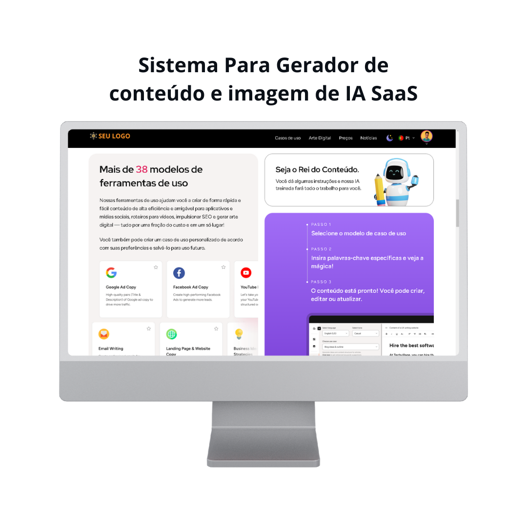 Nosso sistema de IA não é apenas capaz de gerar uma ampla gama de tipos de conteúdo, incluindo postagens de blog, descrição de produtos, landing page e cópia de site, cópia de perfil do LinkedIn, biografia pessoal, descrição de trabalho, meta título e detalhes de SEO, scripts de vídeo e muito mais - ele também inclui seções de criador de imagens e escritor de código que permitem aos usuários criar facilmente imagens e escrever código usando esses módulos.