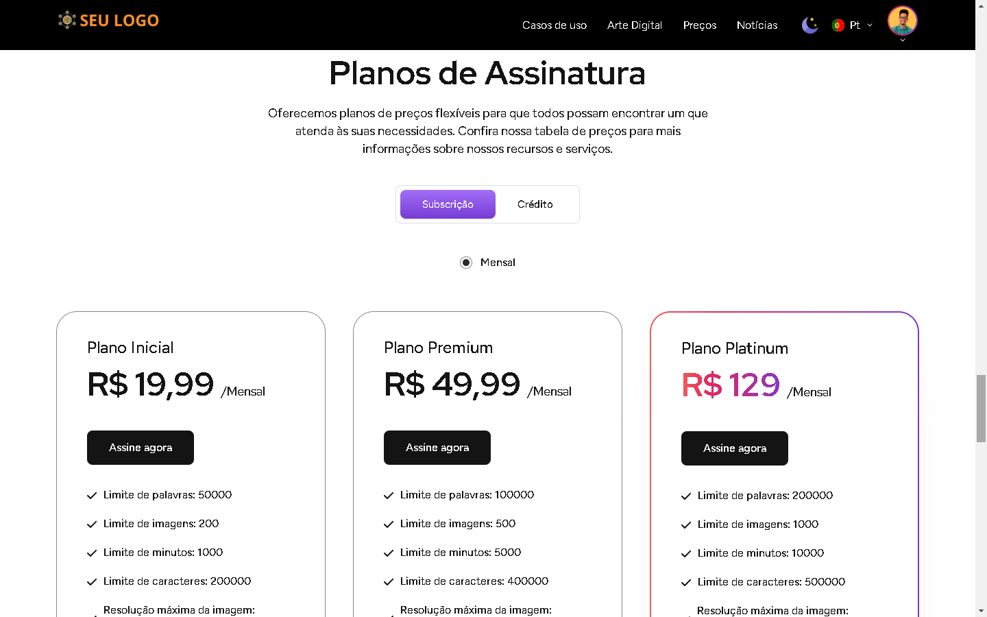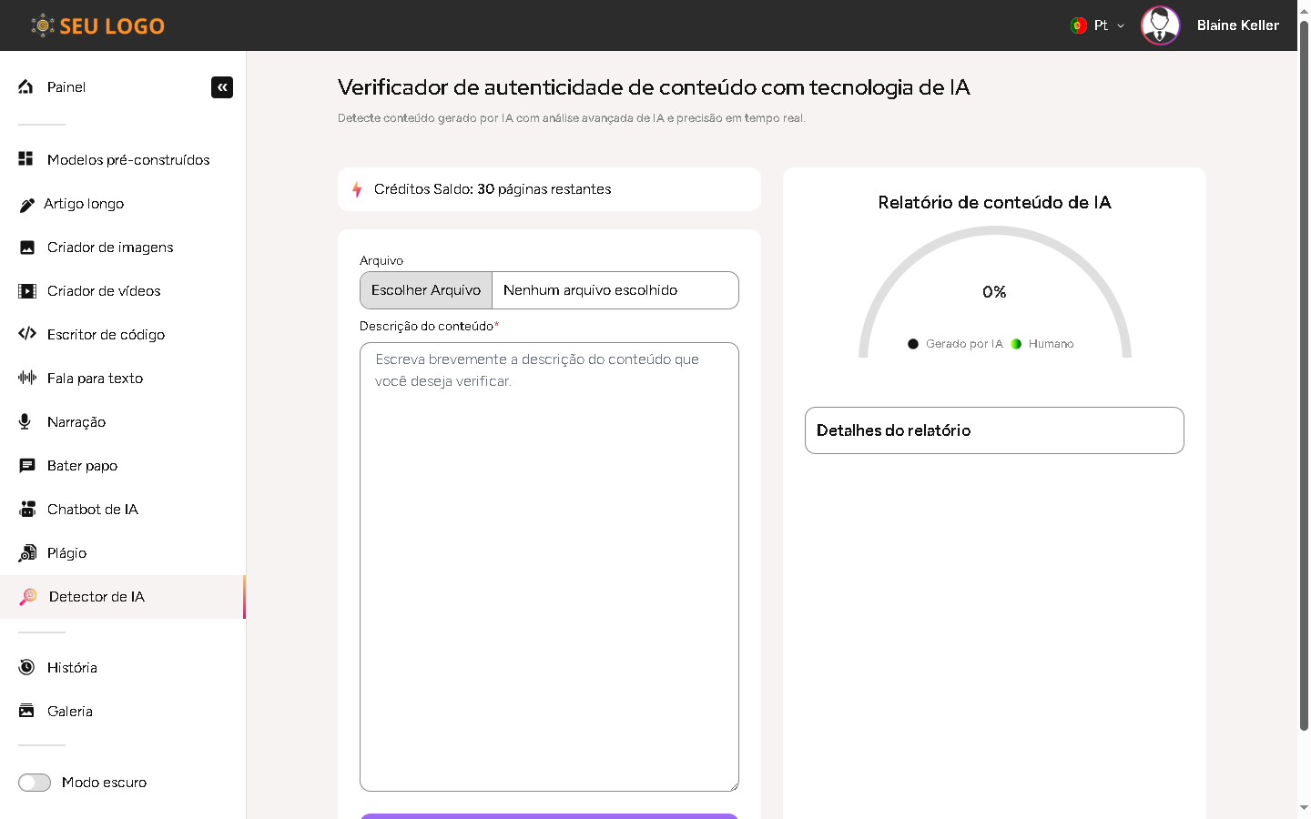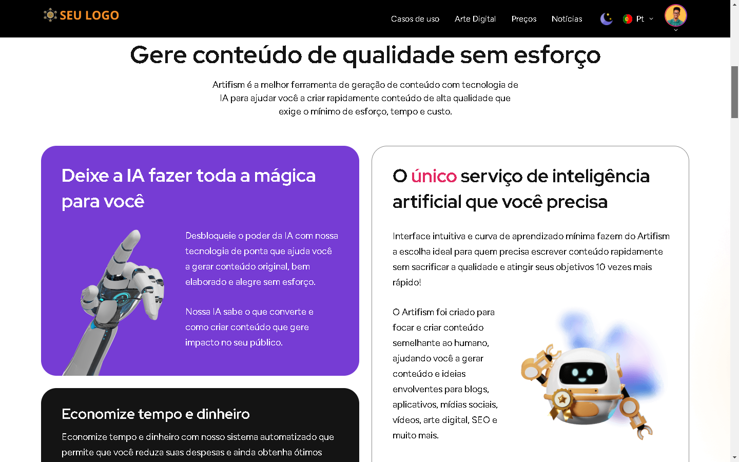Nosso sistema de IA não é apenas capaz de gerar uma ampla gama de tipos de conteúdo, incluindo postagens de blog, descrição de produtos, landing page e cópia de site, cópia de perfil do LinkedIn, biografia pessoal, descrição de trabalho, meta título e detalhes de SEO, scripts de vídeo e muito mais - ele também inclui seções de criador de imagens e escritor de código que permitem aos usuários criar facilmente imagens e escrever código usando esses módulos.