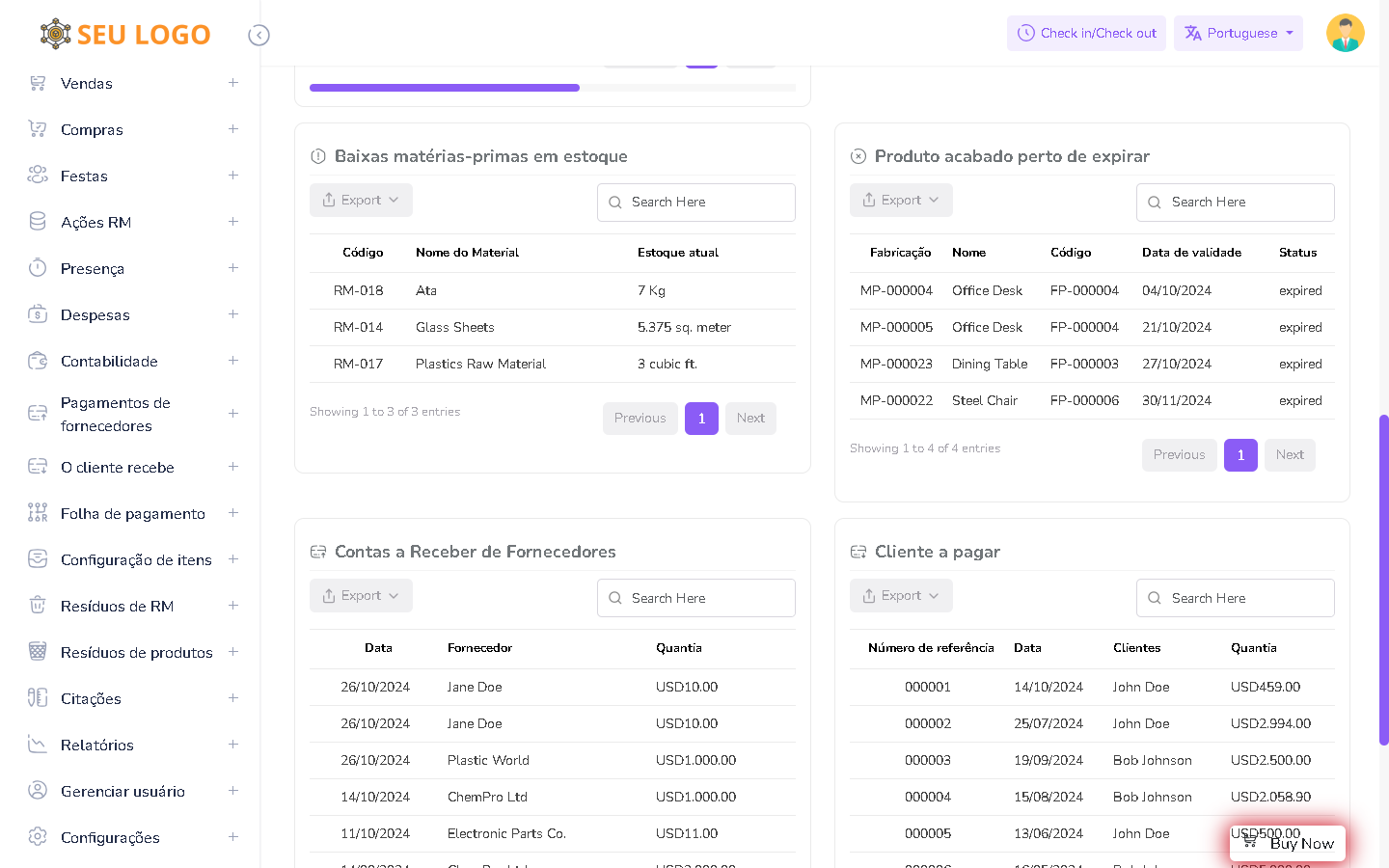 Relatório de compra de matéria-prima