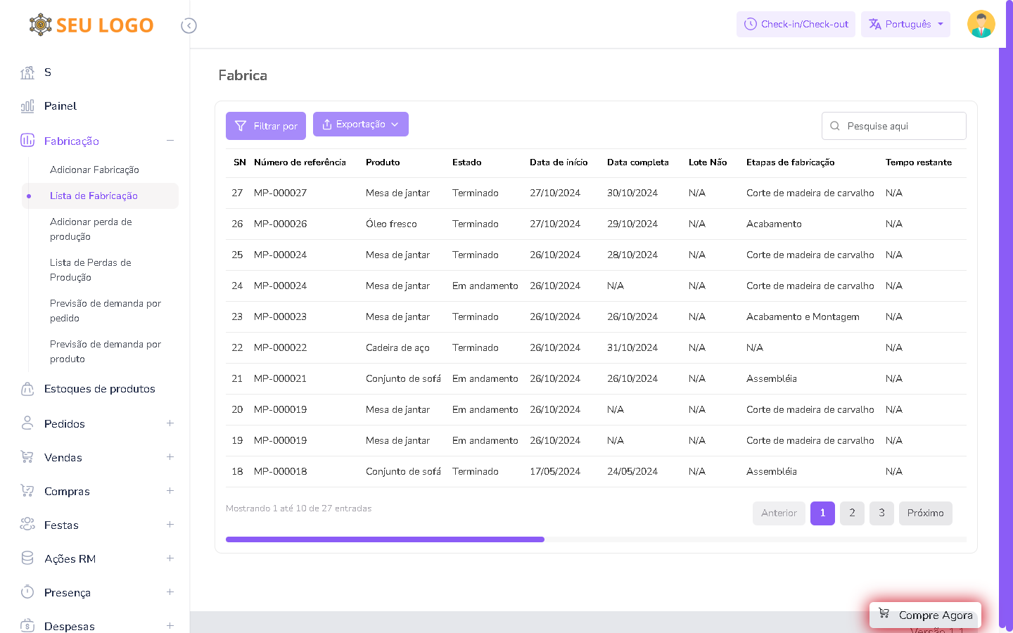 Gerenciamento de lista de materiais.