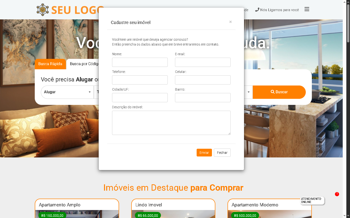 Cadastro detalhado de imóveis para venda e aluguel, com múltiplas imagens