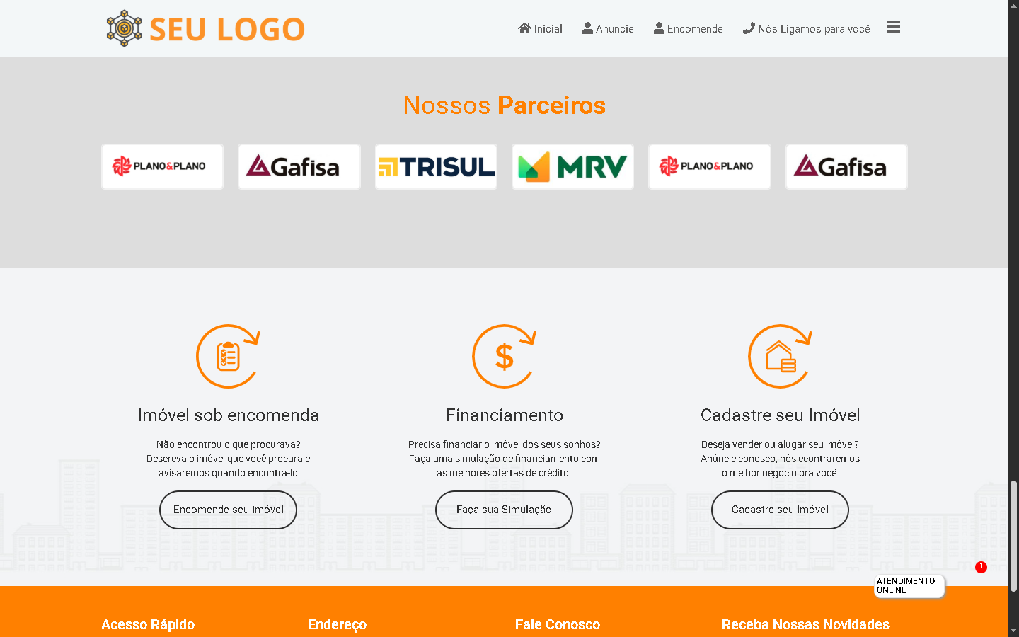 Seções para depoimentos de clientes e parceiros