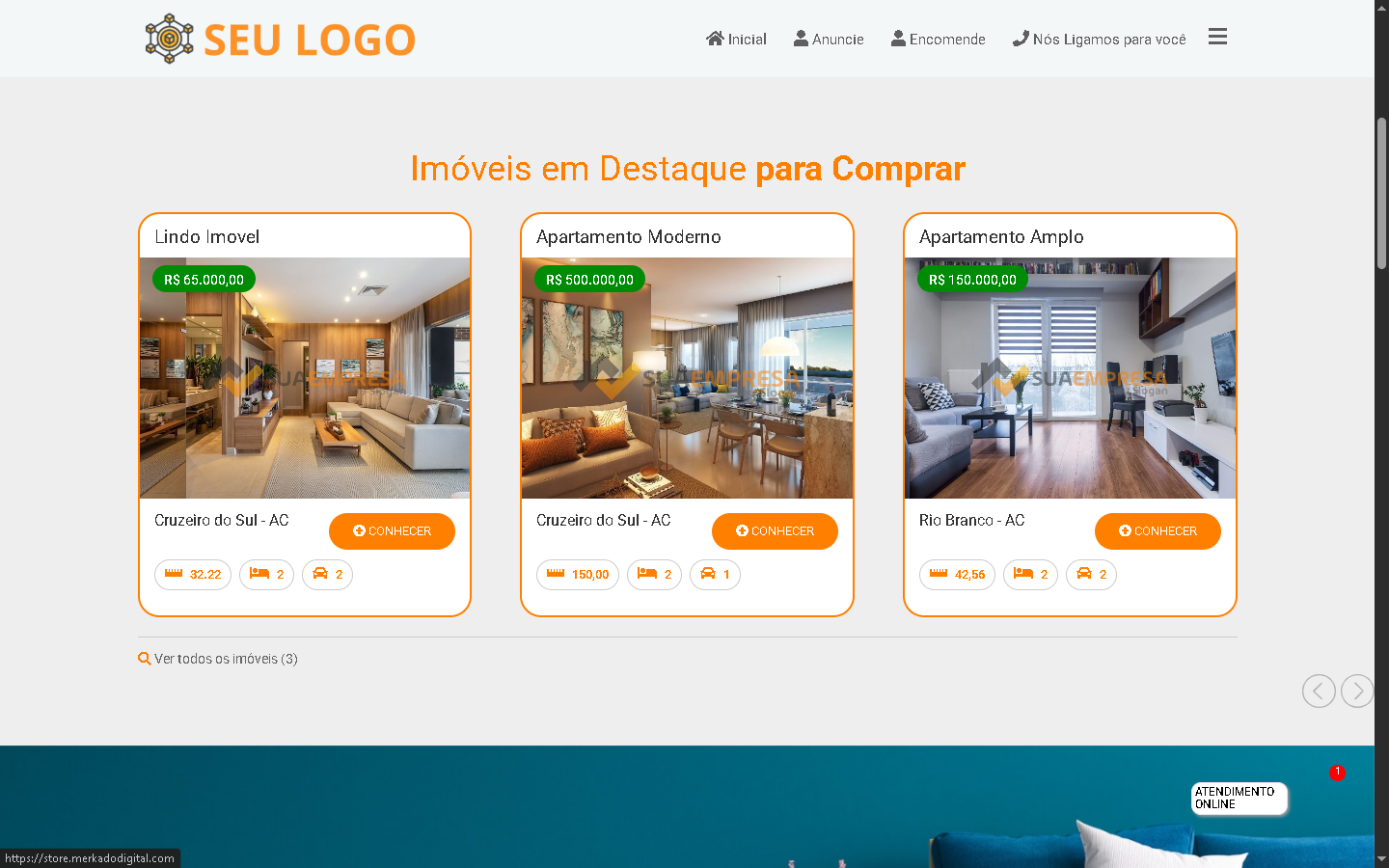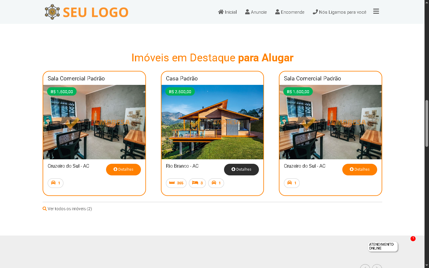 Exibição de imóveis em destaque