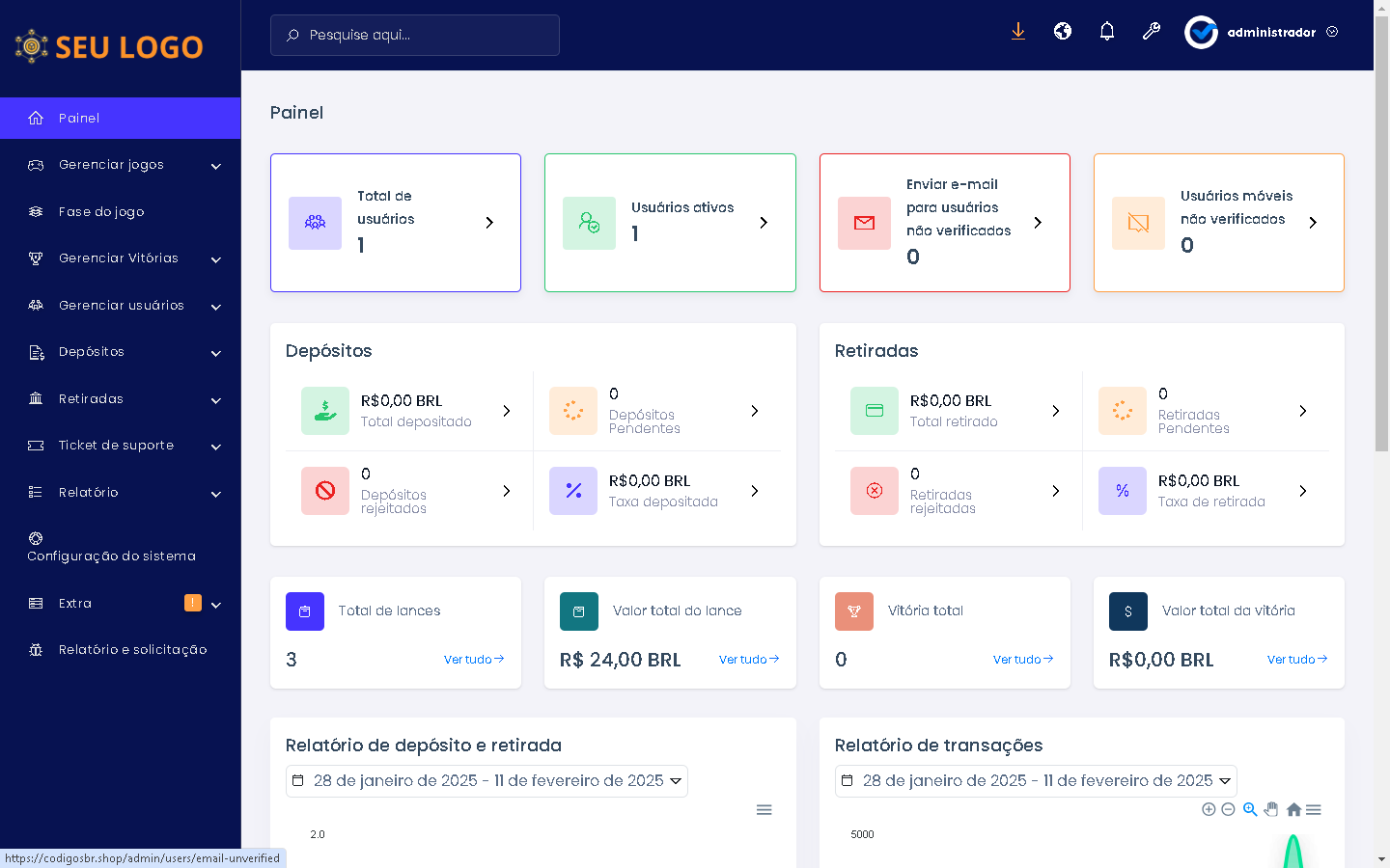 Plataforma de jogos online feita em laravel que permite uma grande oportunidade de começar seu próprio site