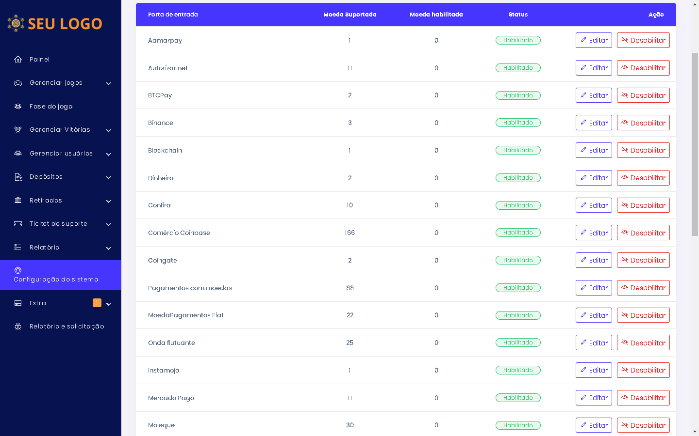Configuração de mais de 30 gateways de pagamento e mais de 250 moedas