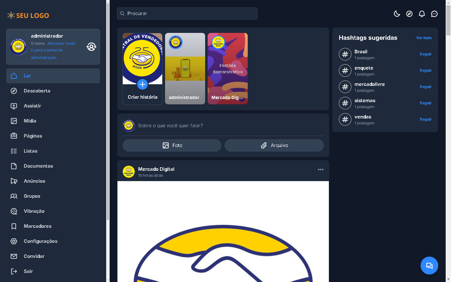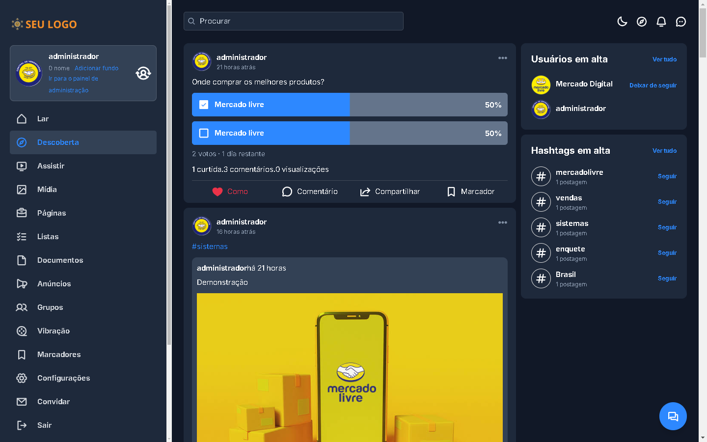 - Compartilhar: ofereça aos seus membros a opção de republicar itens em seu site.