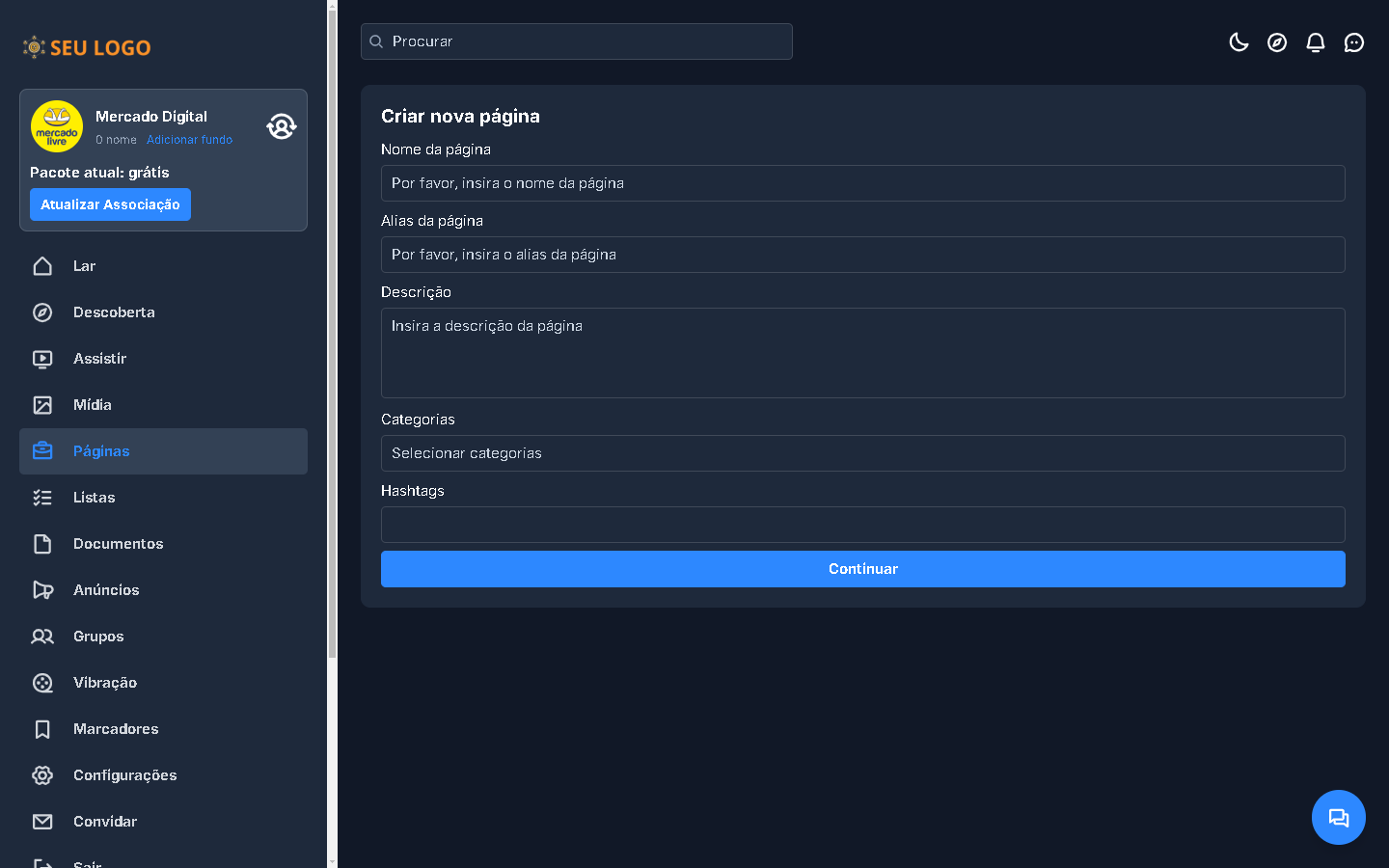 - Convidar: Convide amigos para participar da rede social por e-mail.