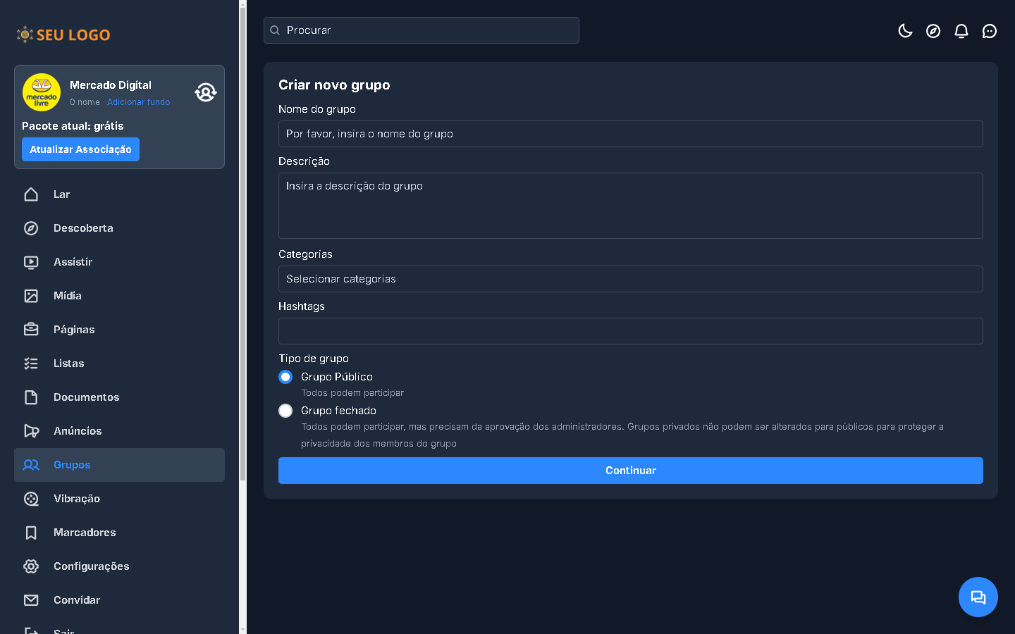 - Denunciar: permite que seus membros denunciem postagens, perfis etc.