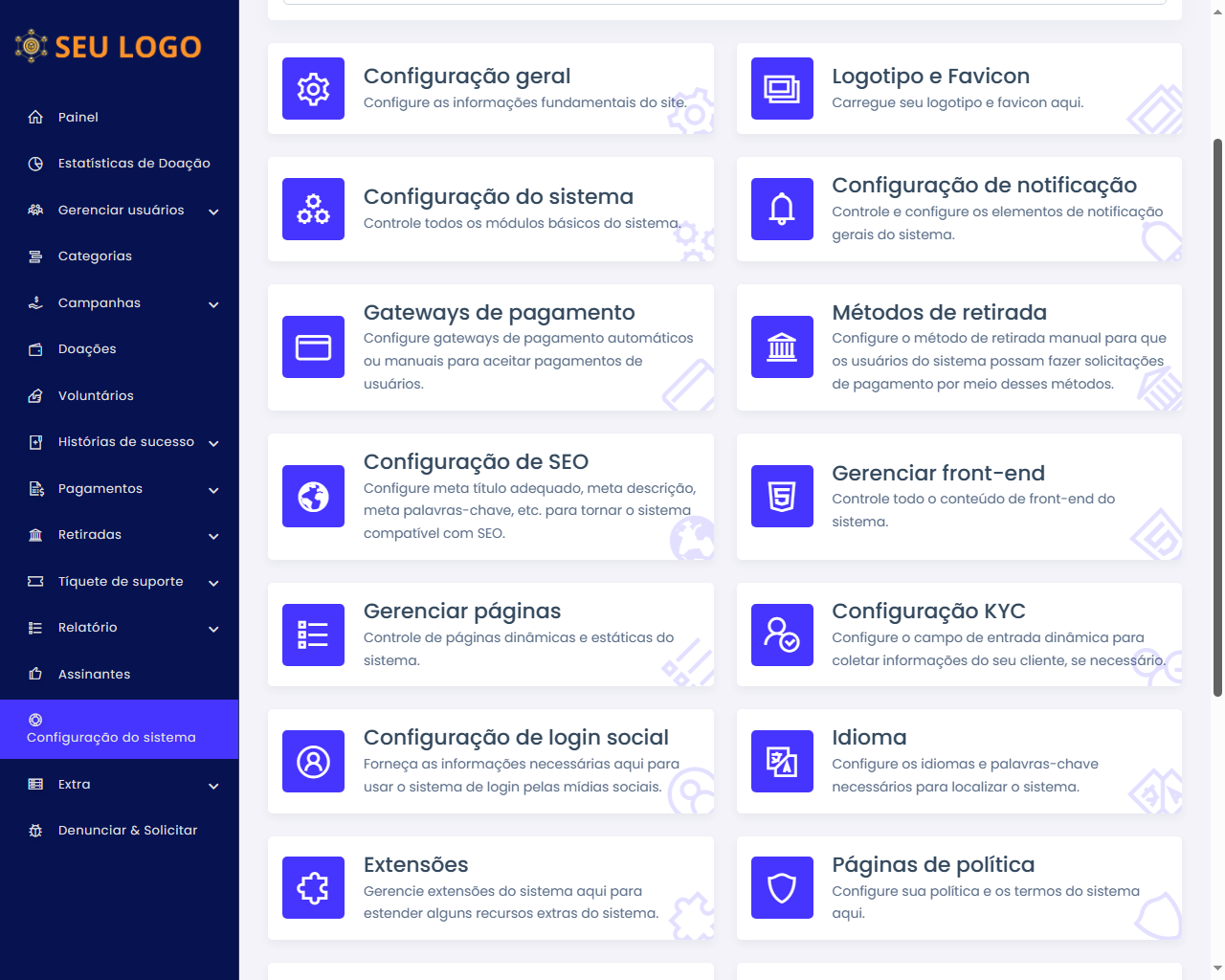 - Painel de administração 100% seguro.