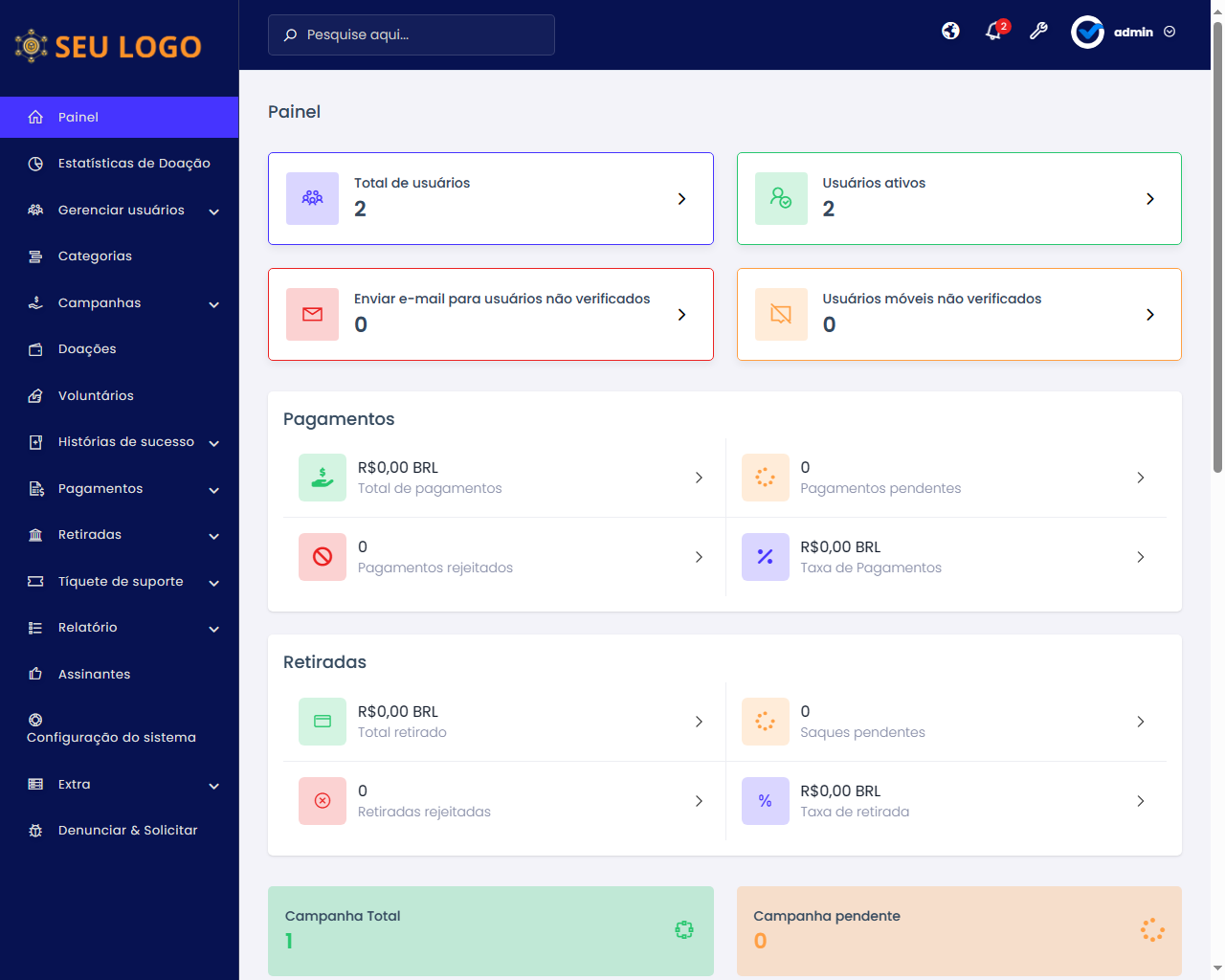- Administrador dinâmico e painel de usuários.