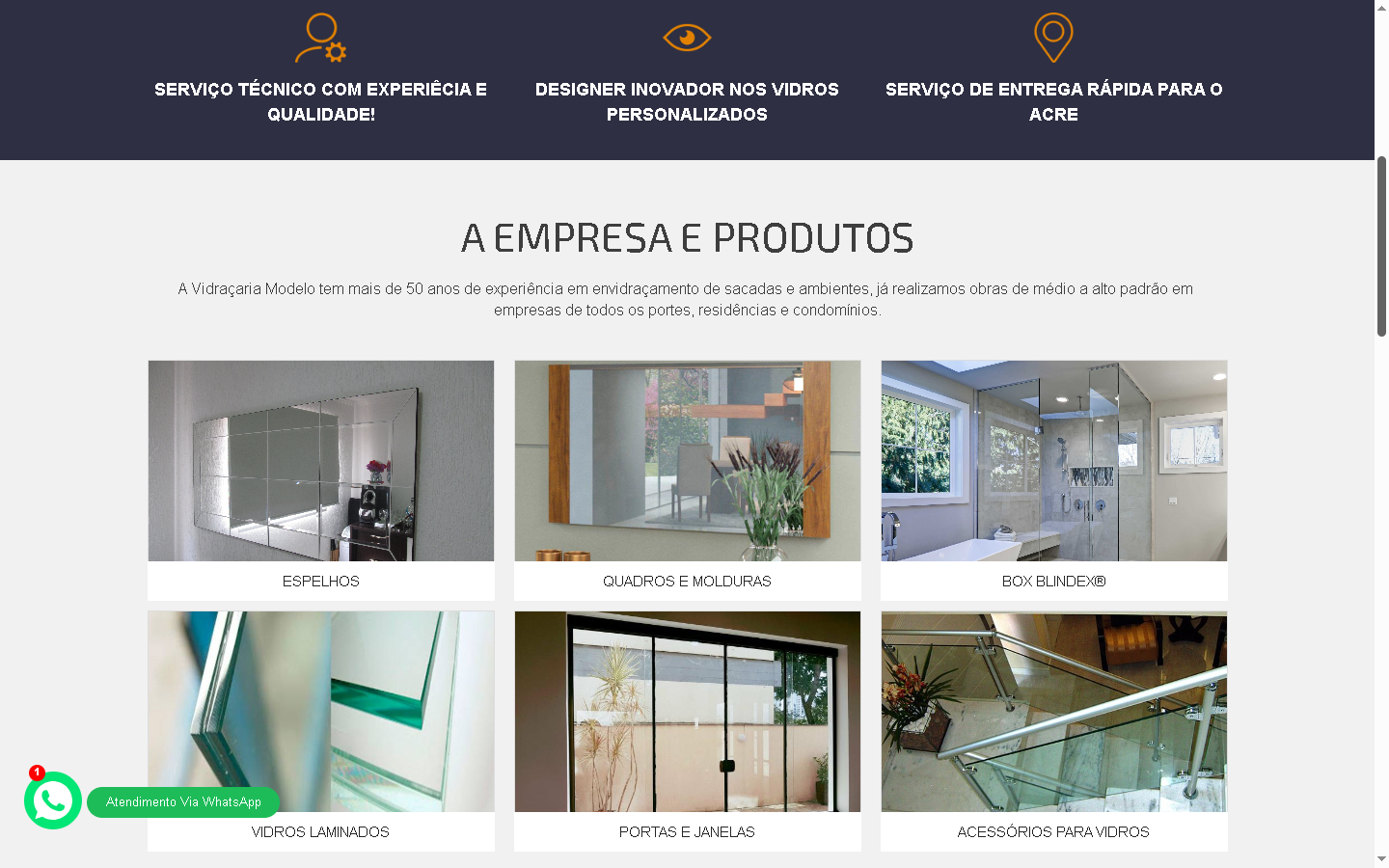 Catálogo digital de produtos (vidros laminados, box, molduras, etc.
