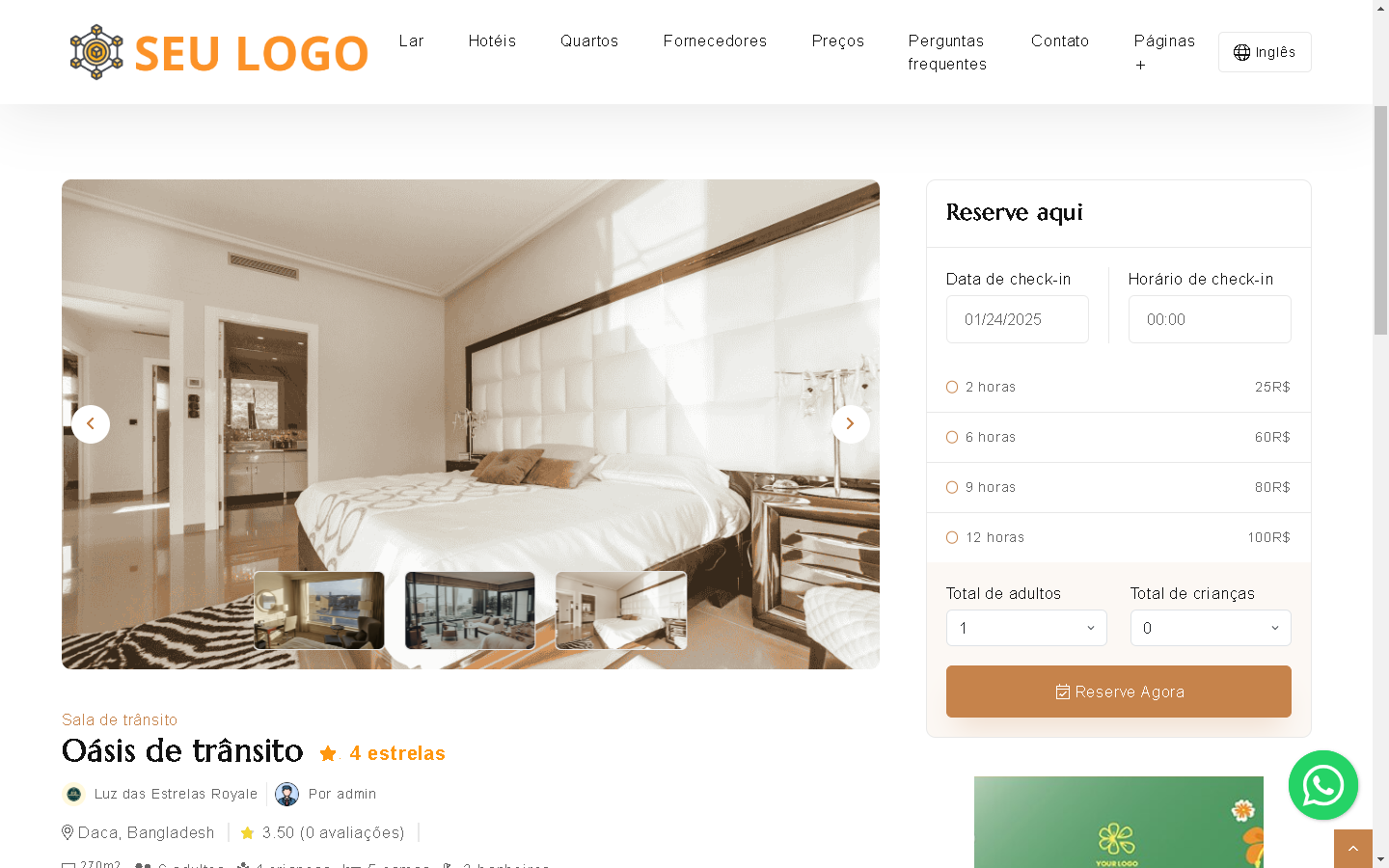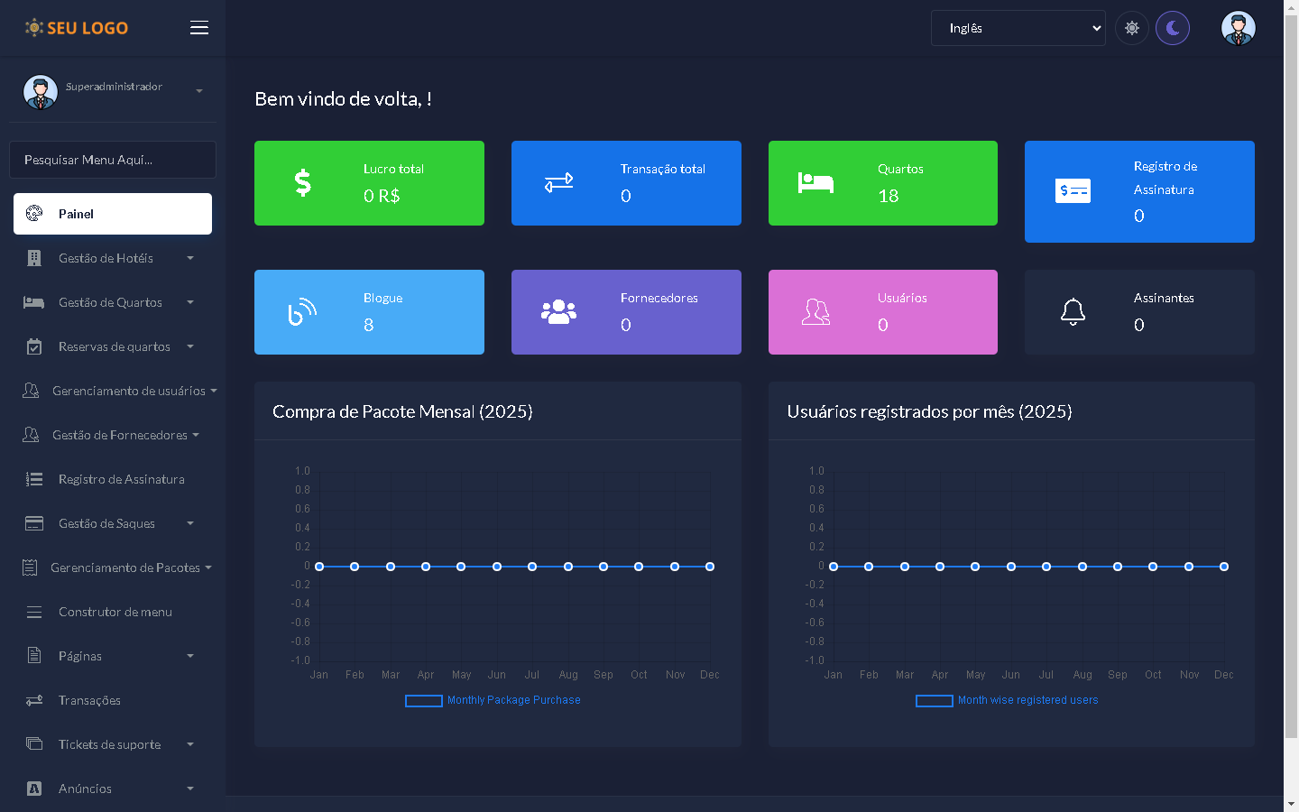 Sistema de reserva de quartos de hotel por hora de vários fornecedores (baseado em assinatura) onde o administrador venderá planos de assinatura (mensal, anual, vitalício) para fornecedores. Os fornecedores assinarão esses planos e adicionarão hotéis e quartos. Os clientes podem reservar esses quartos por hora (ex.: 3 horas, 6 horas, 9 horas, etc.). Os horários reservados e as datas de feriados serão bloqueados para reserva. Os clientes podem pesquisar quartos com filtros de pesquisa avançados (ex.: data, hora, horas, local, etc.). Além disso, ele suporta pesquisa de hotéis/quartos com base em localização geográfica/raio, pode ser habilitado/desabilitado.