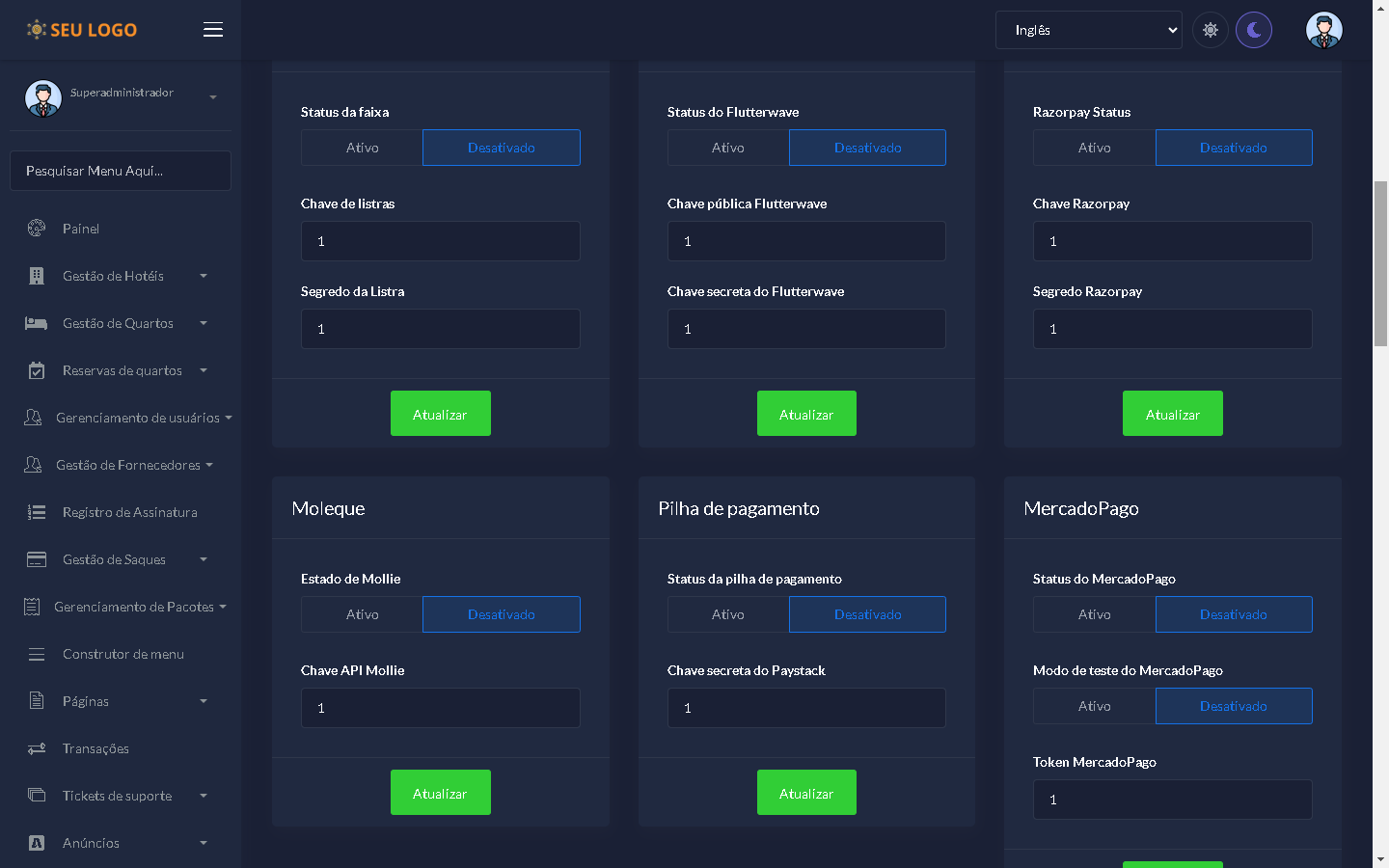 Os fornecedores podem promover seus hotéis/quartos com pagamento adicional. Existem 19 métodos de pagamento automatizados, e o administrador também pode criar métodos de pagamento offline ilimitados/opções de transferência bancária manual. Ele também vem com 3 modelos exclusivos e atraentes.