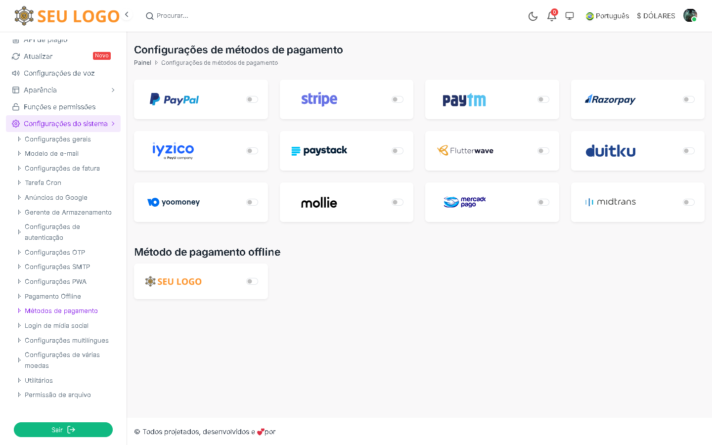 Suporte a vários gateways de pagamento