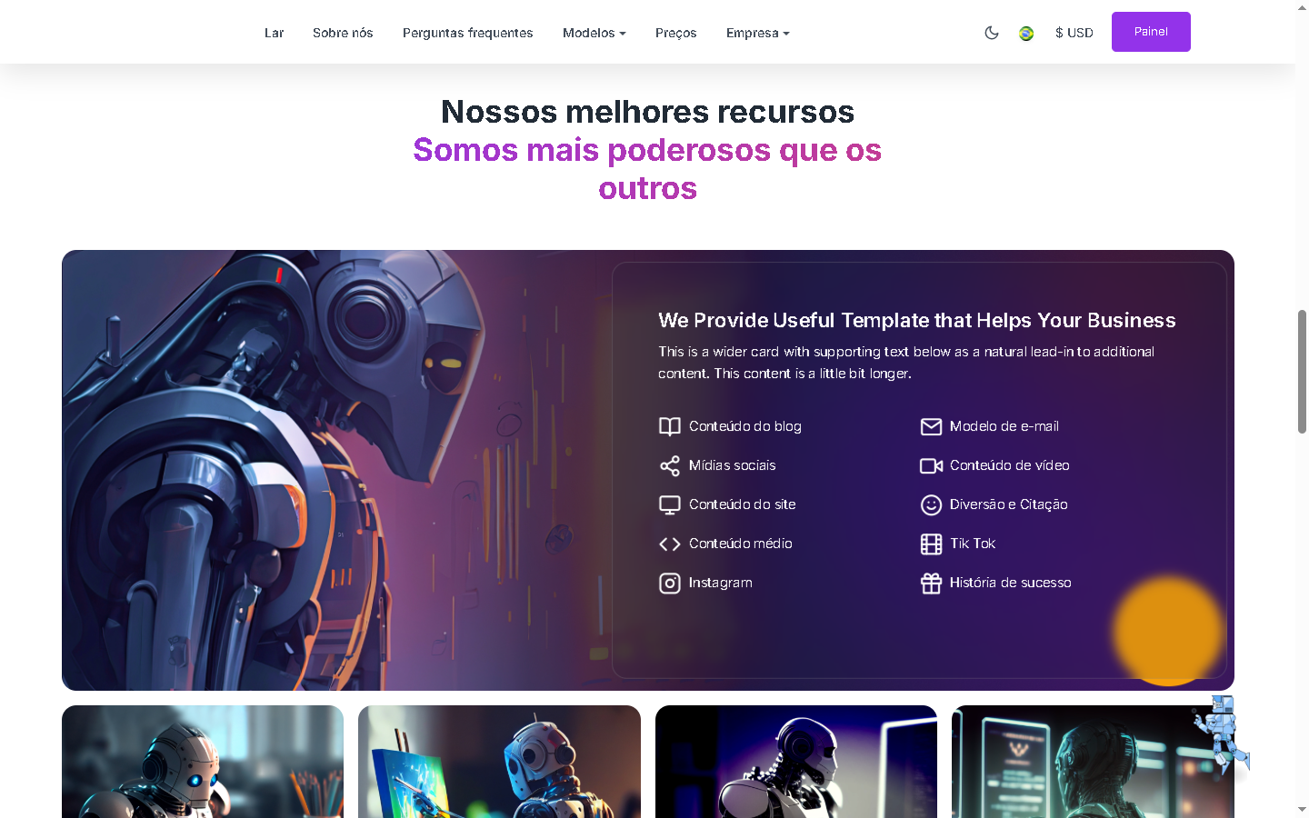 OpenAI para fornecer aos seus usuários uma gama de recursos excepcionais. Com o sistema, os usuários podem gerar facilmente conteúdo e imagens exclusivos e sem plágio, aproveitando vários idiomas para maior versatilidade. Tudo em uma plataforma SaaS para gerar conteúdo, imagem e código de IA.