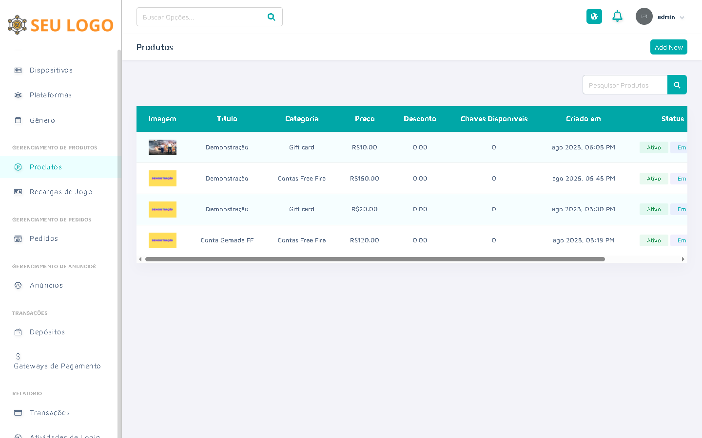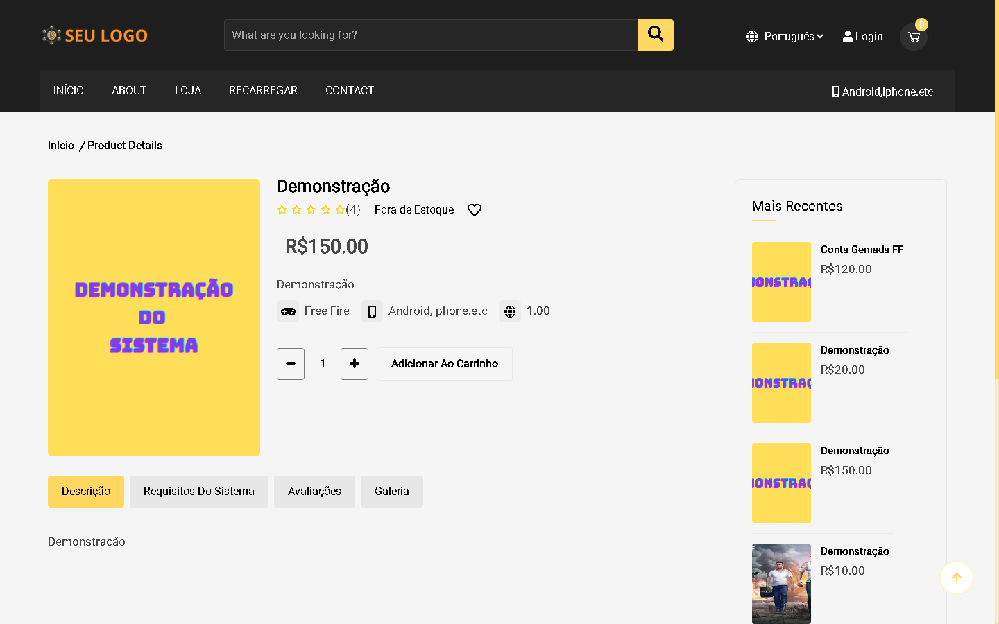 OBS: O SISTEMA ESTÁ EM INGLÊS, MAS PODE SER TRADUZIDO PARA QUALQUER IDIOMA! DEMO https://gsell.comprephp.com.br ADMIN https://gsell.comprephp.com.br/admin LOGIN admin SENHA admin |